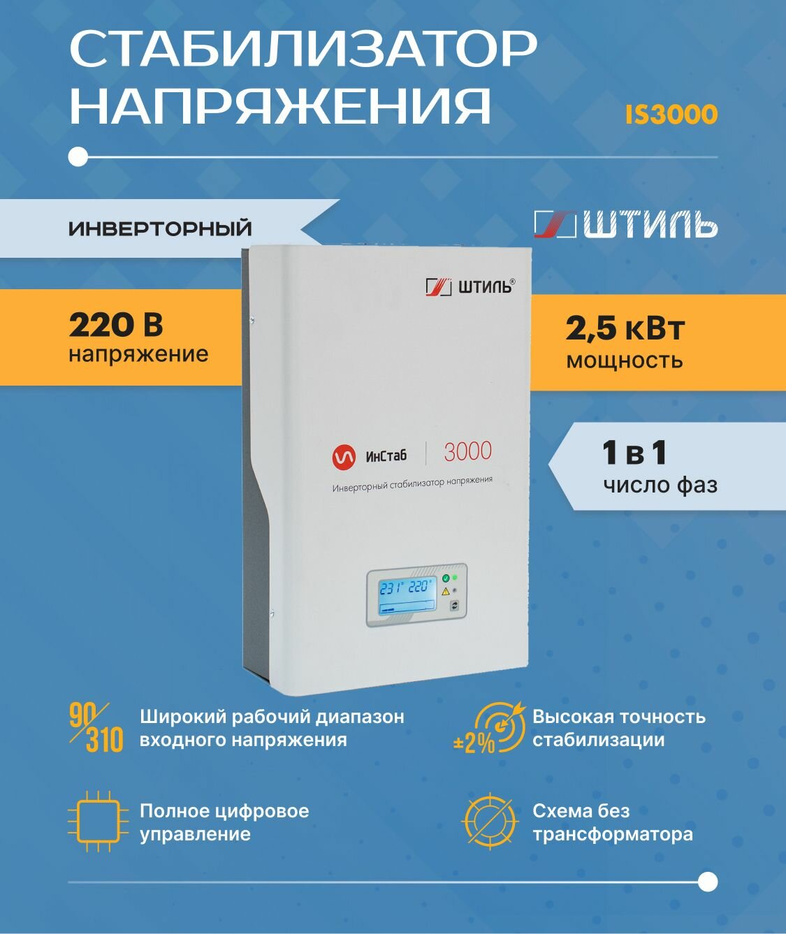 Купить Однофазный стабилизатор Штиль ИнСтаб IS3000 (220 В) (3000 ВА , инверторный ) для котла, дома, дачи.