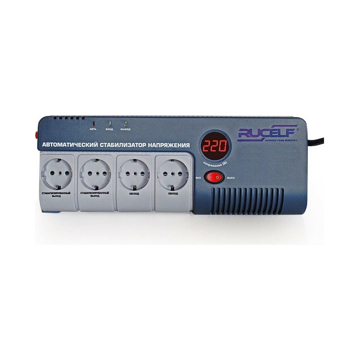 Купить Стабилизатор напряжения RUCELF SRW-1500-D 1500 Вт, 4 розетки, серый