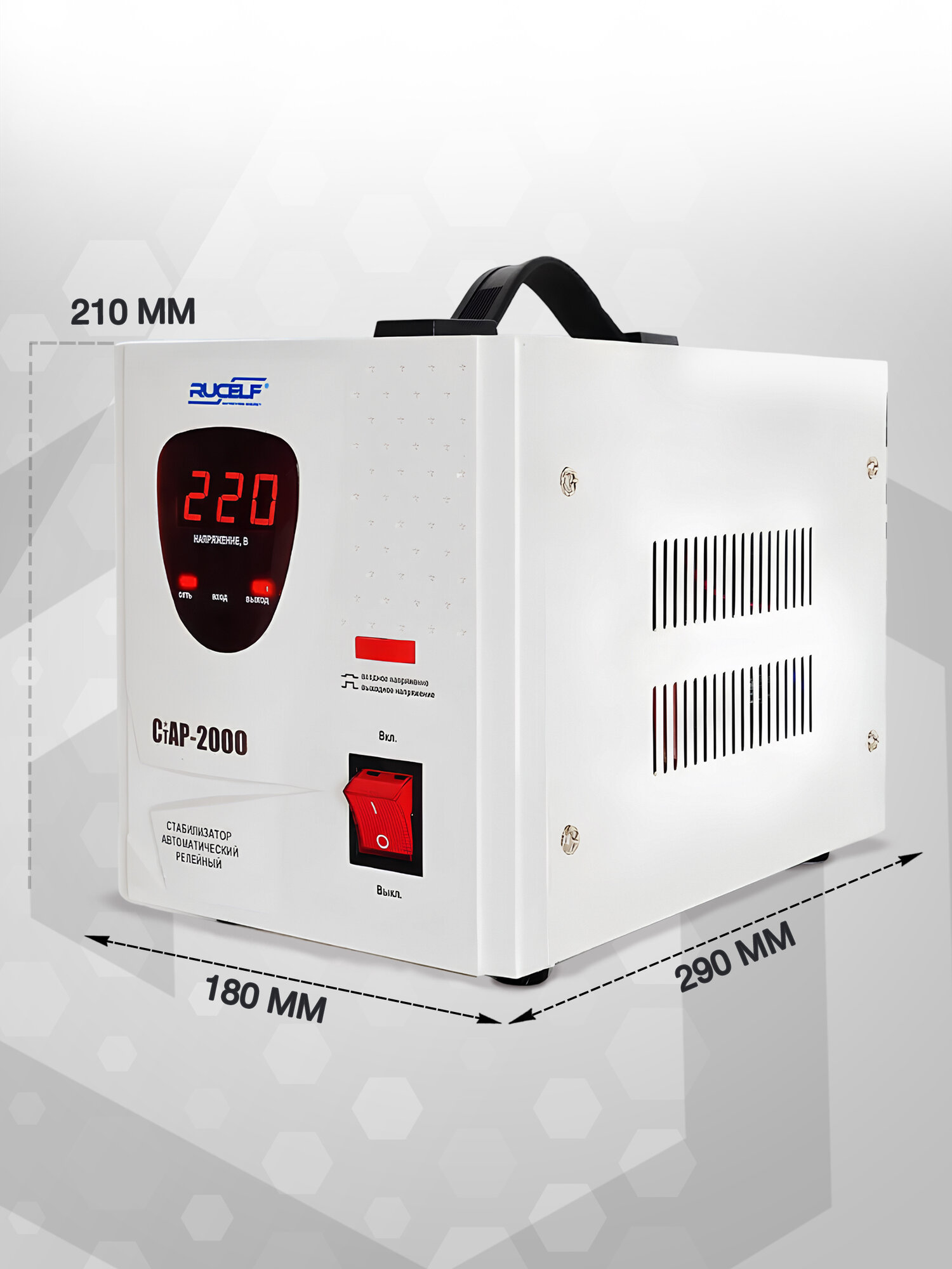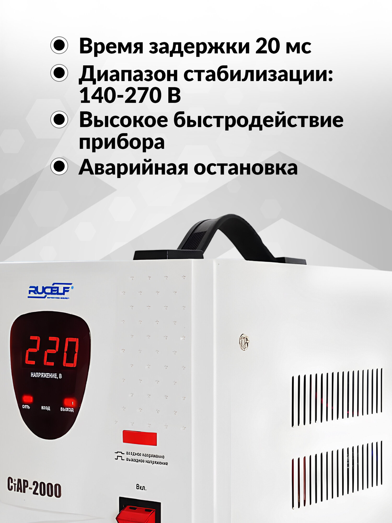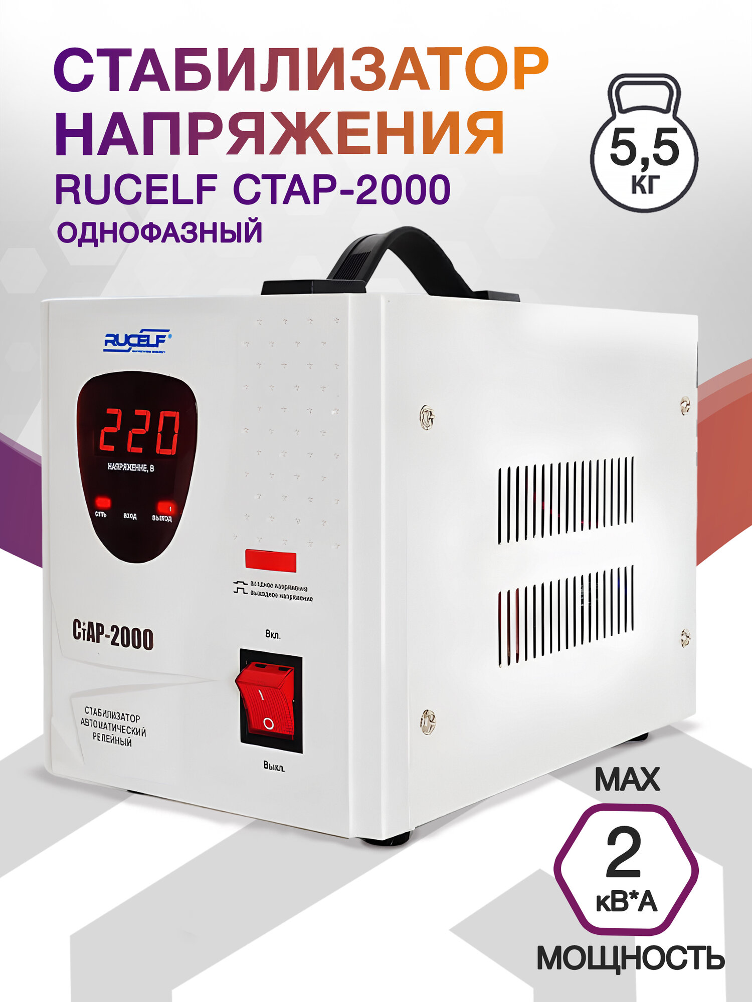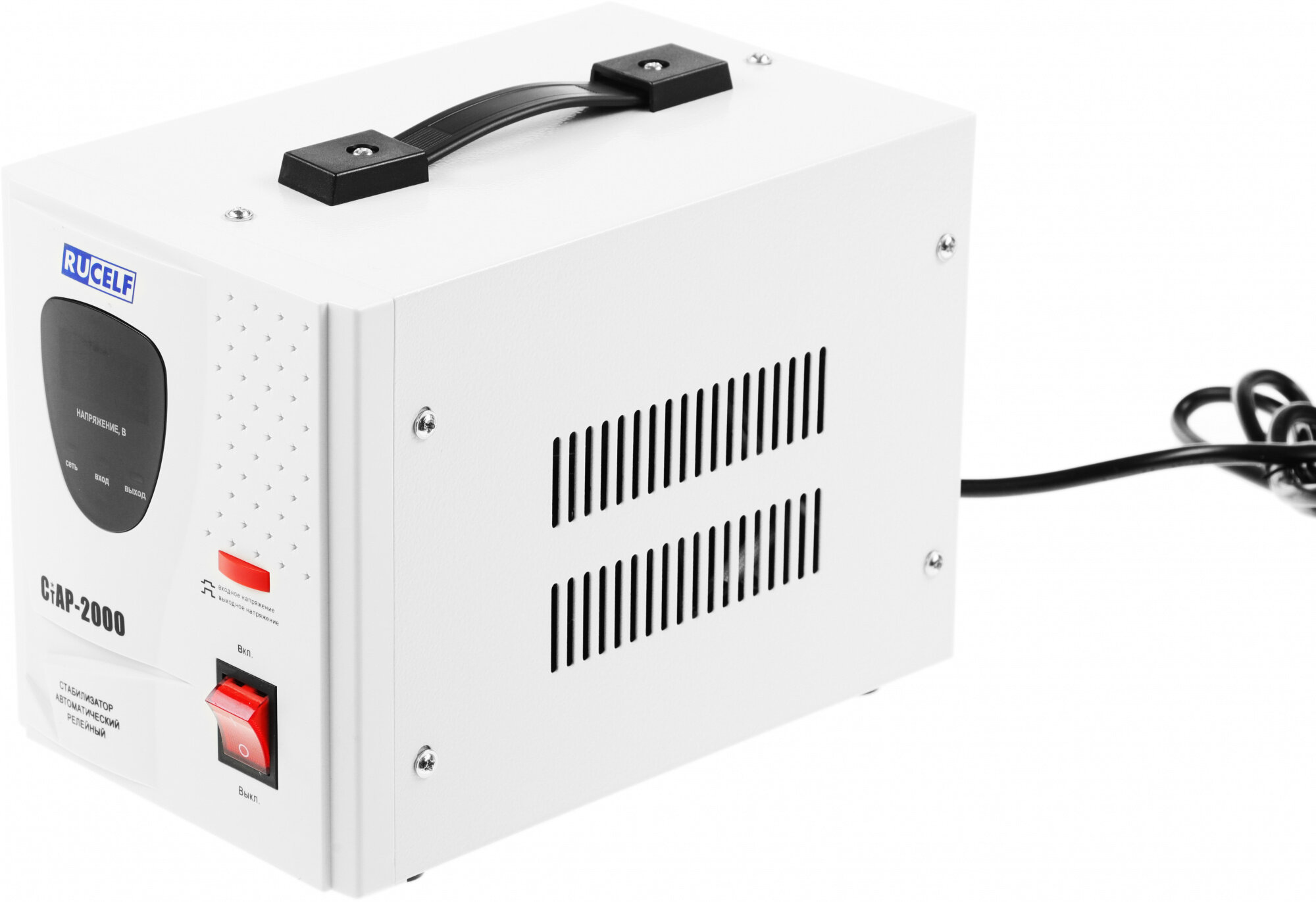 Стабилизатор напряжения однофазный RUCELF СтАР-2000 белый 2000 ВА 1400 Вт 180 мм 290 мм 210 мм 5.5 кг 2 шт.