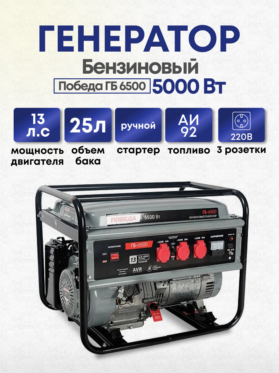 Генератор бензиновый Победа ГБ 6500, 5000 Вт