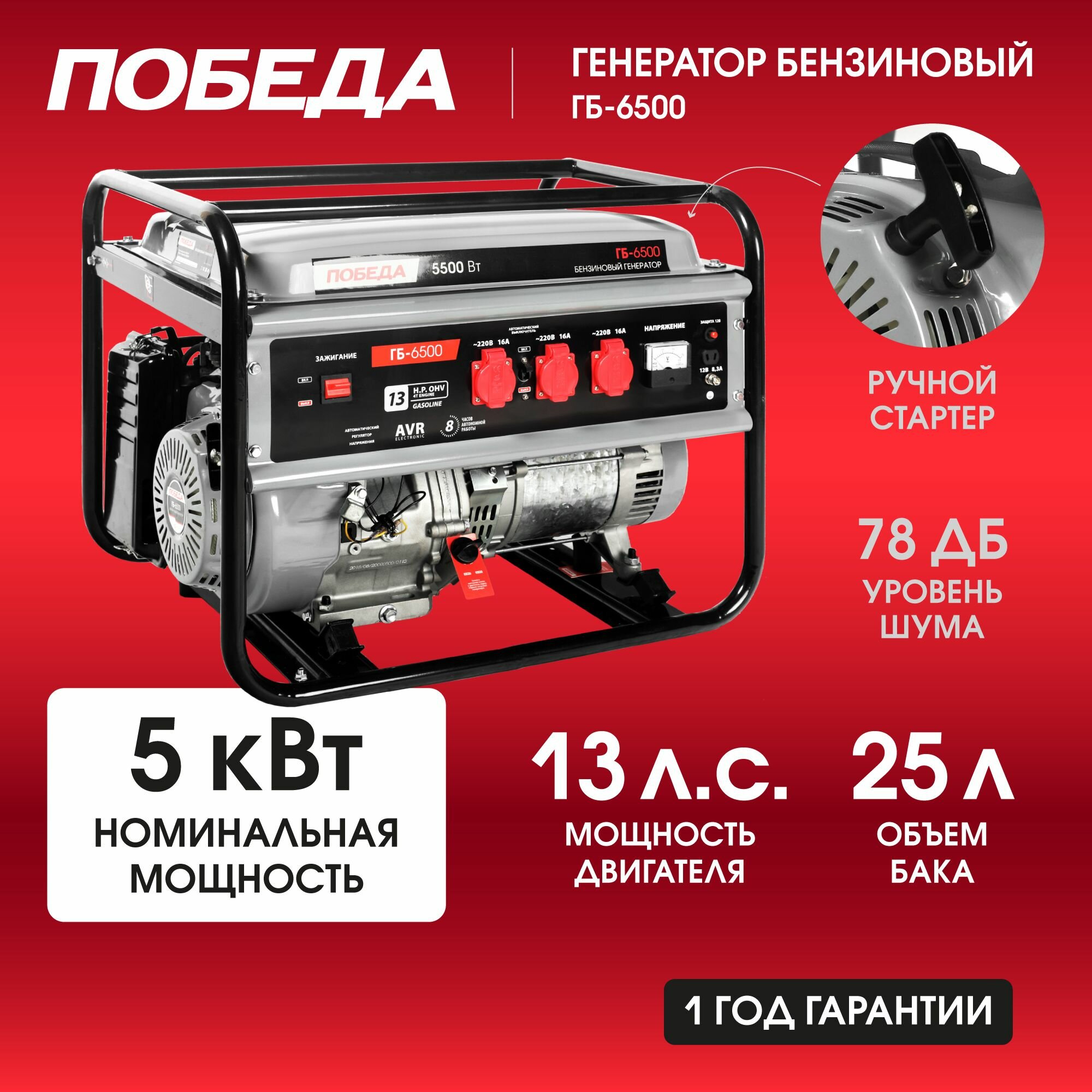 Купить Генератор бензиновый Победа ГБ 6500 5 кВт (475101765)