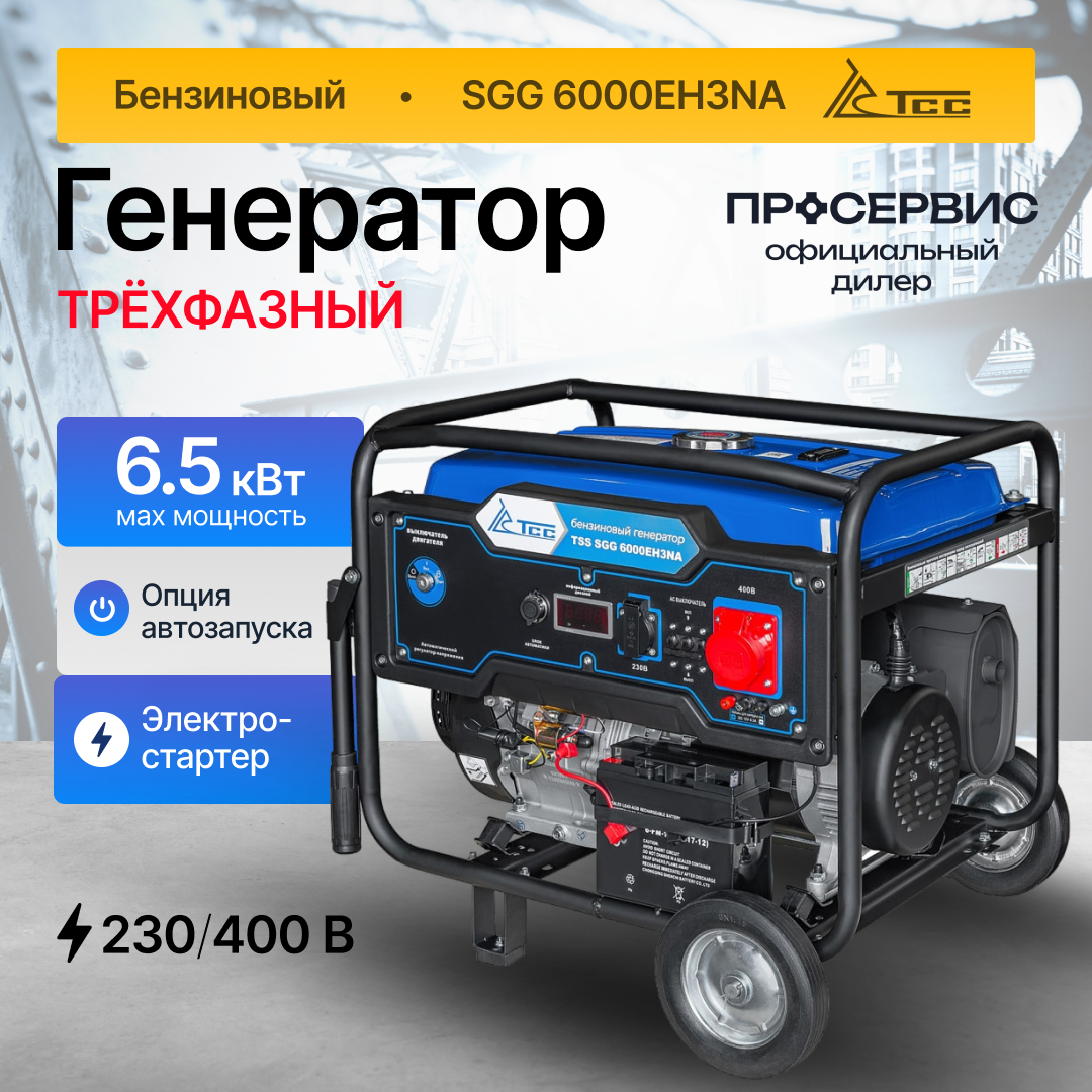 Бензиновый генератор трёхфазный TSS SGG 6000EH3NA VI7 (6,5 кВт. 3 фазы) с электростартером и разъемом для АВР