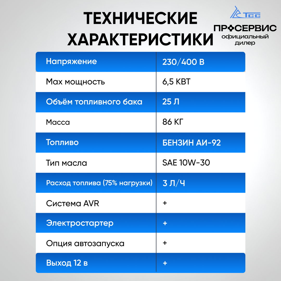 | Максимальная мощность | 6500 Вт |