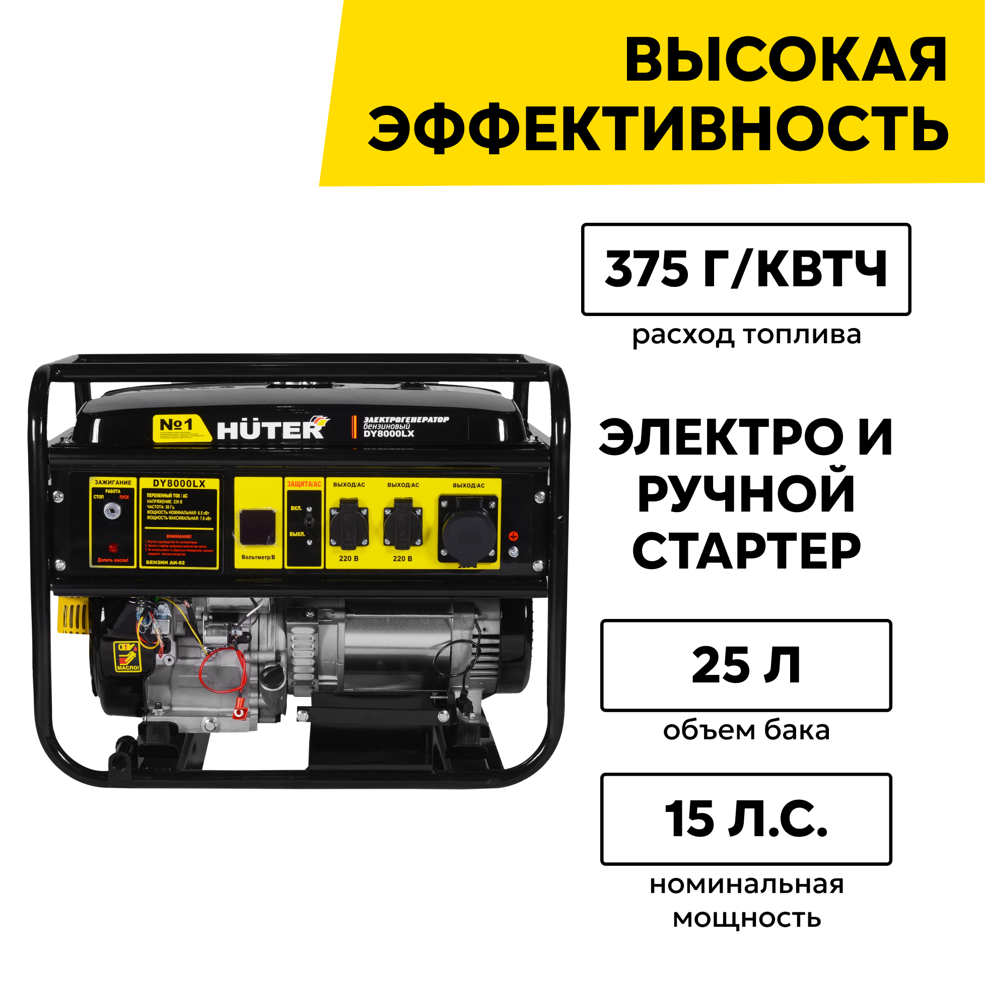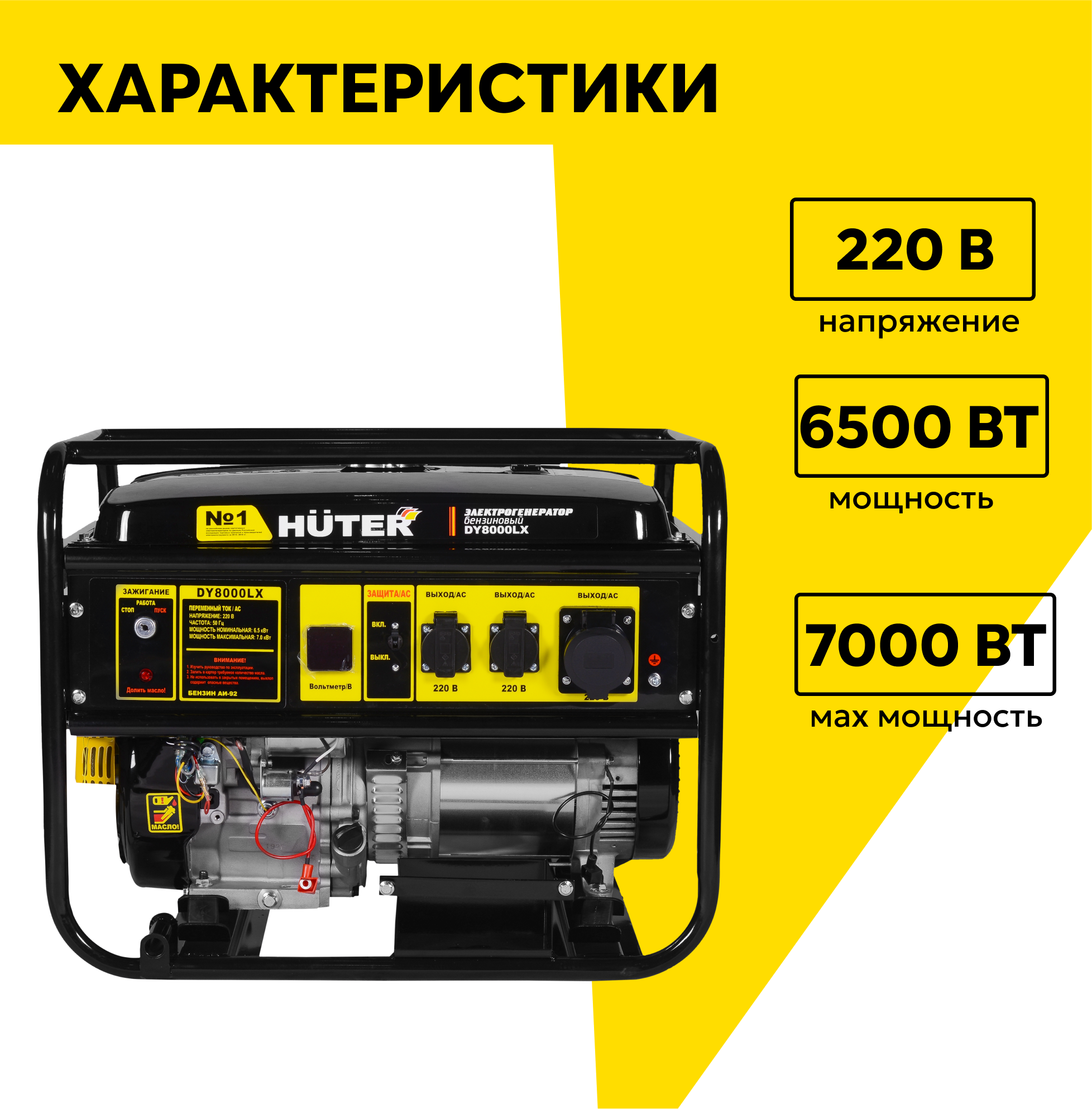 Генератор бензиновый Huter DY8000LX, 6500 Вт