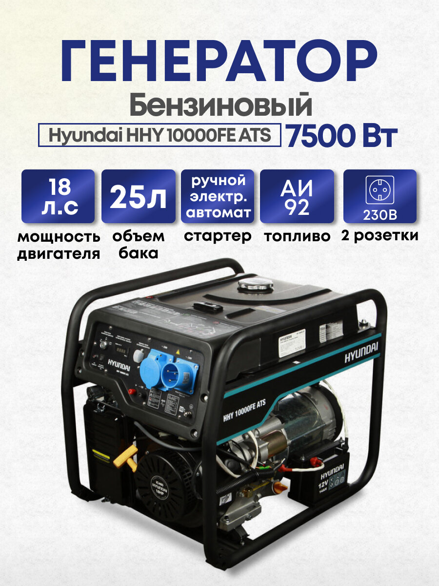 Бензиновый генератор HYUNDAI HHY 10000FE ATS, 230 В, 8кВт