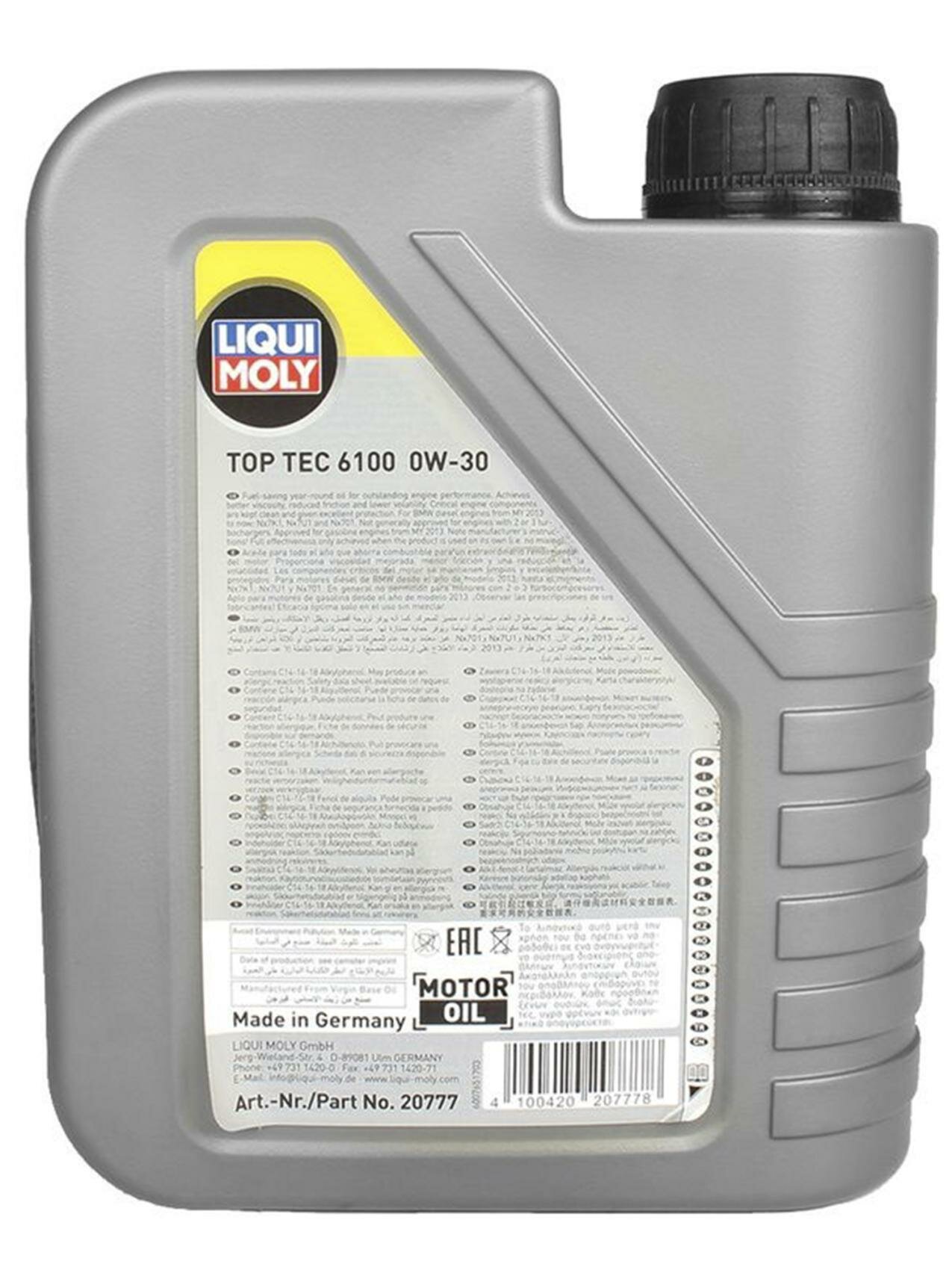 LIQUI MOLY 20777 масло моторное Top Tec 6100 0W-30 (1L)