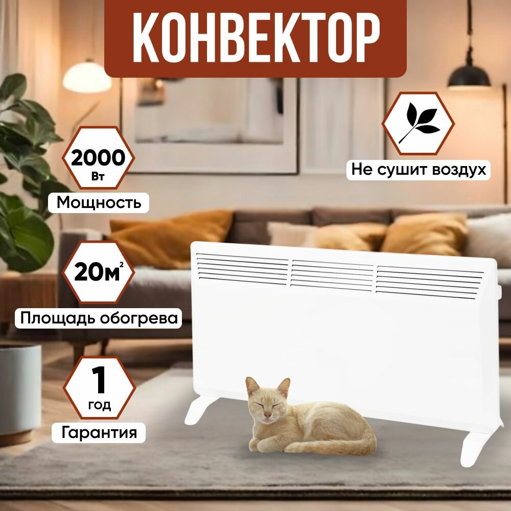 СохранитьКонвектор электрический ЭК-2000X, термостат, ножки, белый, 2000 Вт, TDM интересное: