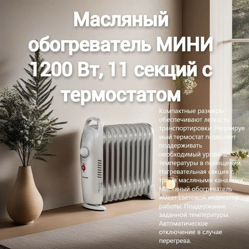 Масляный обогреватель МИНИ-11, 1200 Вт, 11 секций с термостатом, TDM SQ2501-0910 (1 шт.)