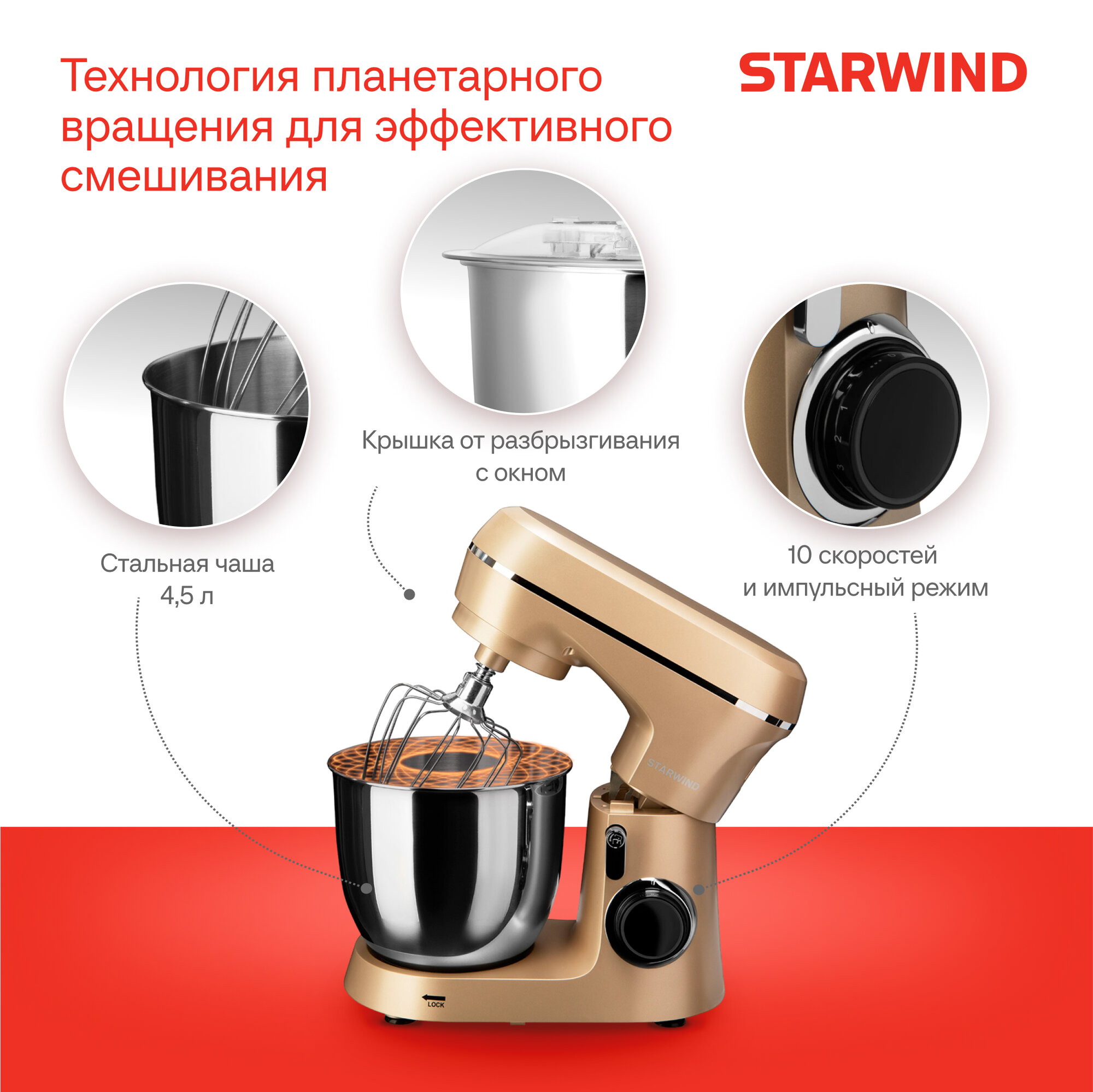 Купить Миксер Starwind SPM6163 планетарный золотистый