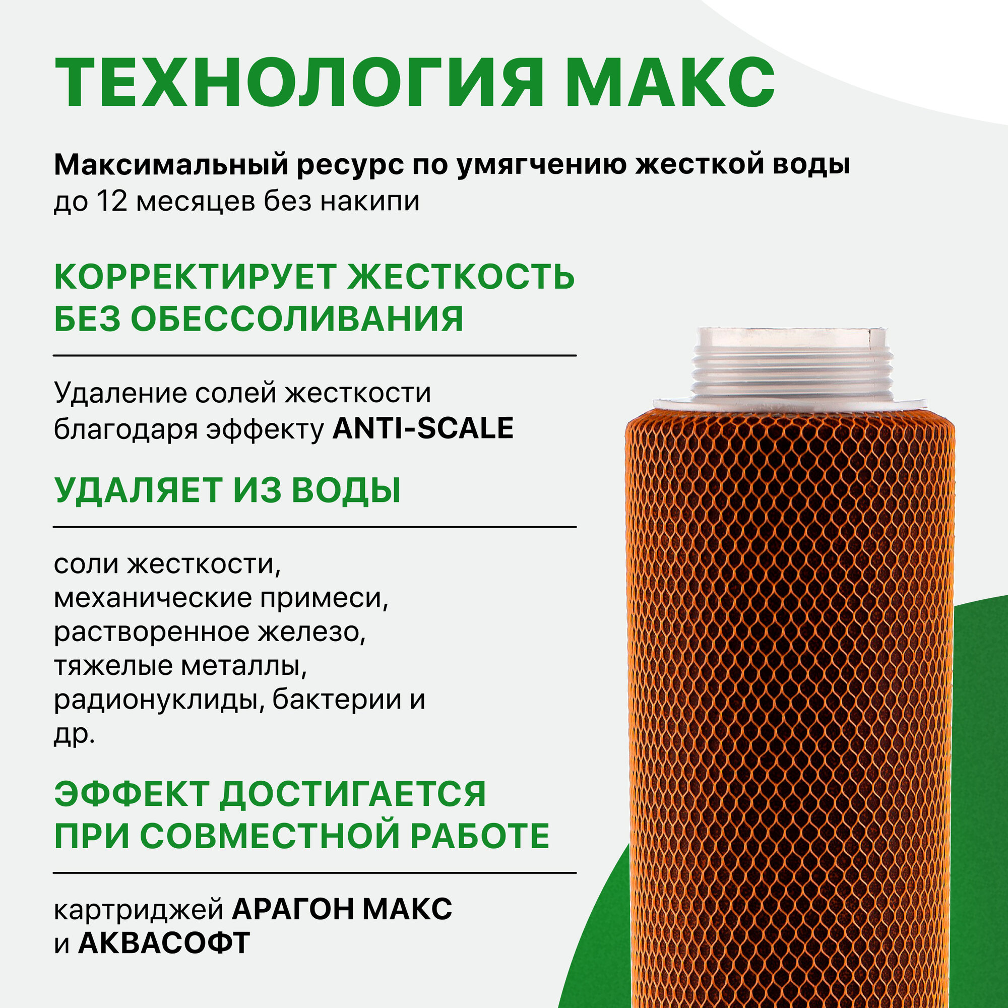 | Дополнительная информация | используется в с фильтре Гейзер Макс (для жесткой и сверхжесткой воды); комплектация: AquaSoft, Арагон Макс, Карбон-блок |