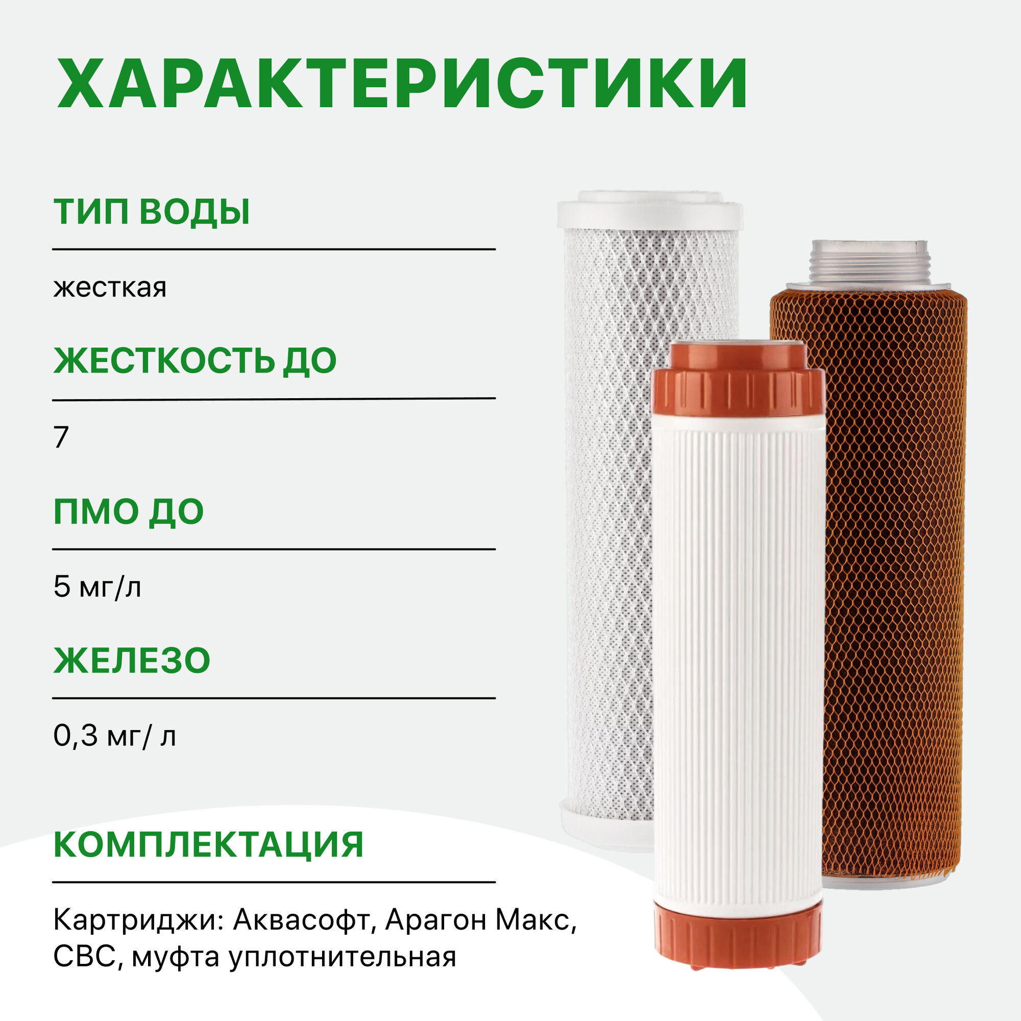 | Отзыв: | До этого стояли картриджи для жесткой воды. Эти фильтруют гораздо лучше. У нас очень жесткая вода. В чайнике всё время скапливалась накипь. Теперь стоит грязевой фильтр, магистральный Арагон3 и этот комплект - и накипь становится заметно очень не скоро |