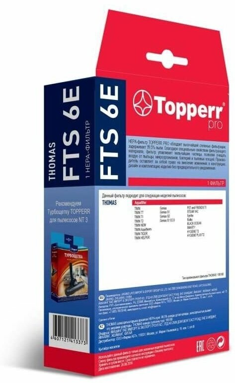Нера-фильтр Topperr FTS6 E, 1шт., для пылесосов Thomas (FTS6 E)