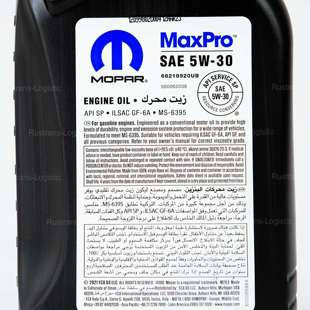 Chrysler Mopar SP 5W-30 MaxPro (Оман), (1л), масло моторное синтетика 5w30 Мопар 68218920UB, РТЛ