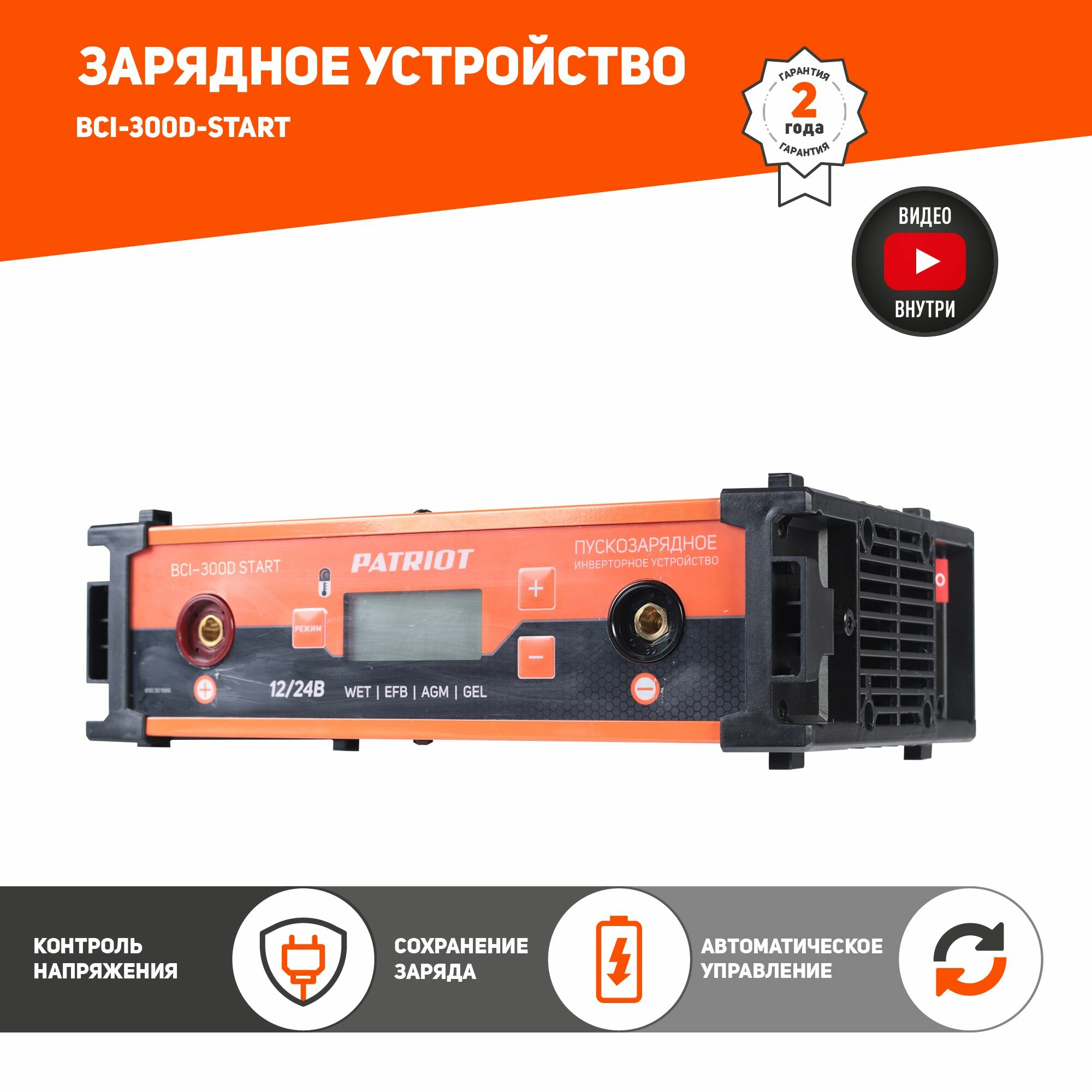 Пускозарядное инверторное устройство PATRIOT BCI-300D-Start, 700 Ач, 12/24 В, автоматическое управление, режим сохранения заряда / автомобильная зарядка для аккумулятора / для акб