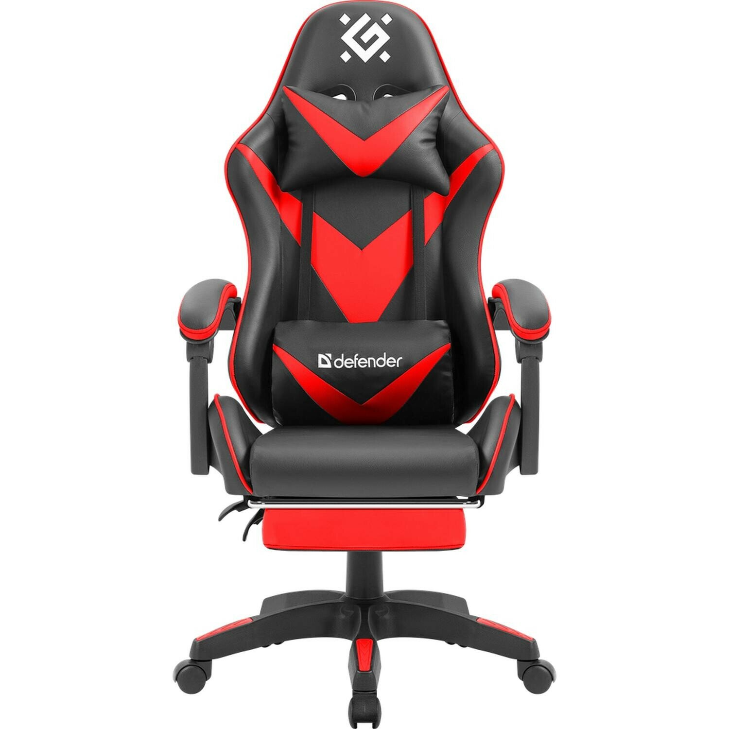 Игровое кресло Defender Rock, черный/красный, подставка, PU