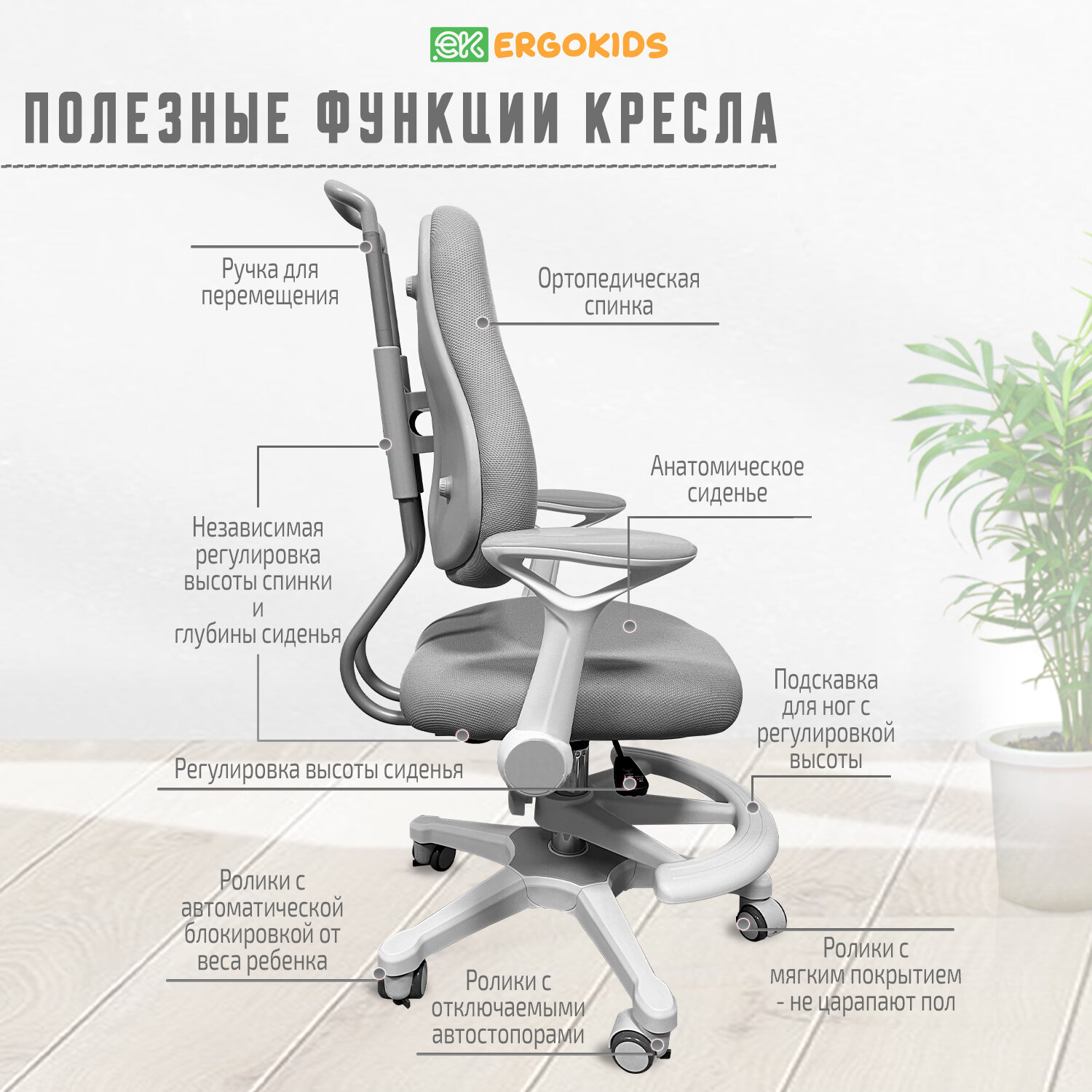 СохранитьРастущее компьютерное детское кресло с подлокотниками Ergokids Columbia Plus Y-507ARM серое интересное: