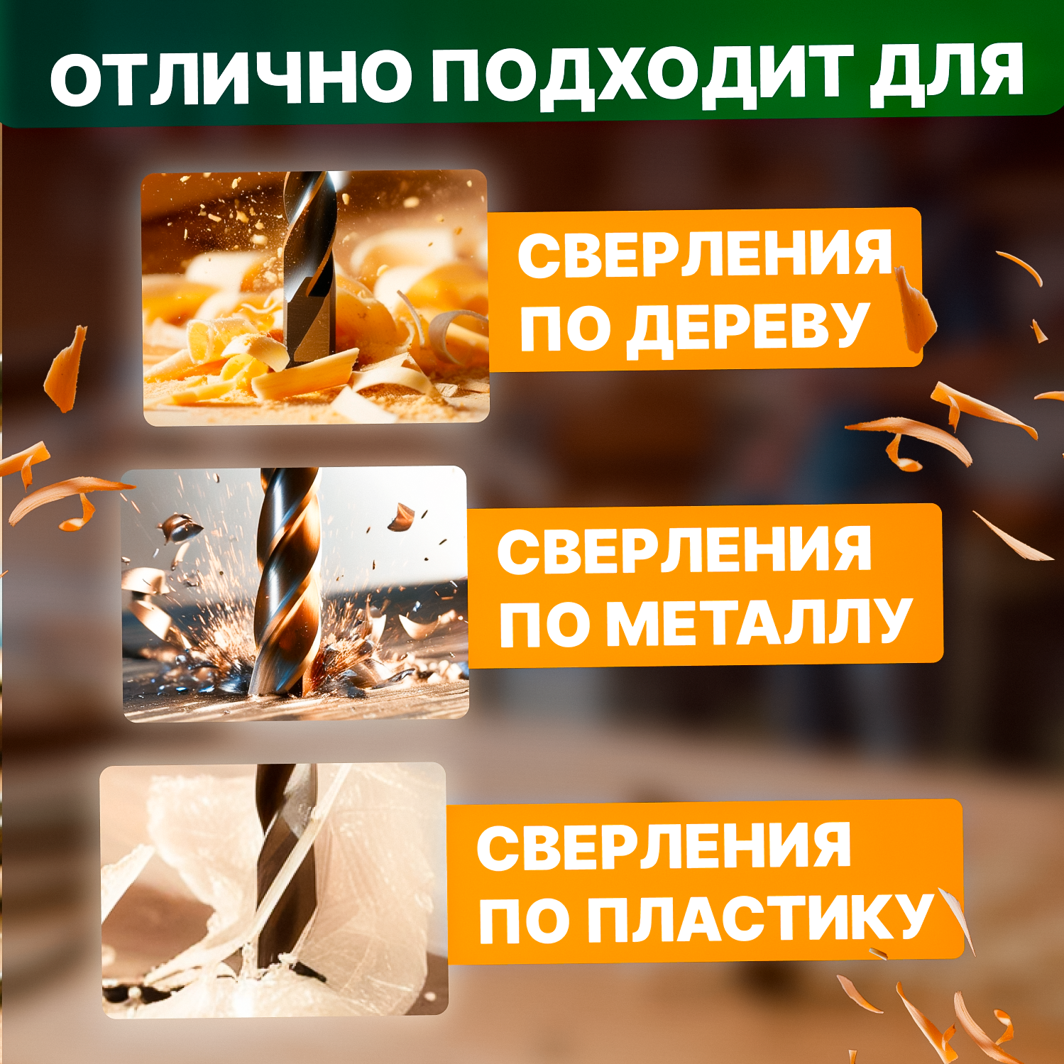 | Плюсы: | Сверла что надо. Можно сверлить и дерево и металл. Диаметр сверла наиболее ходовой. |