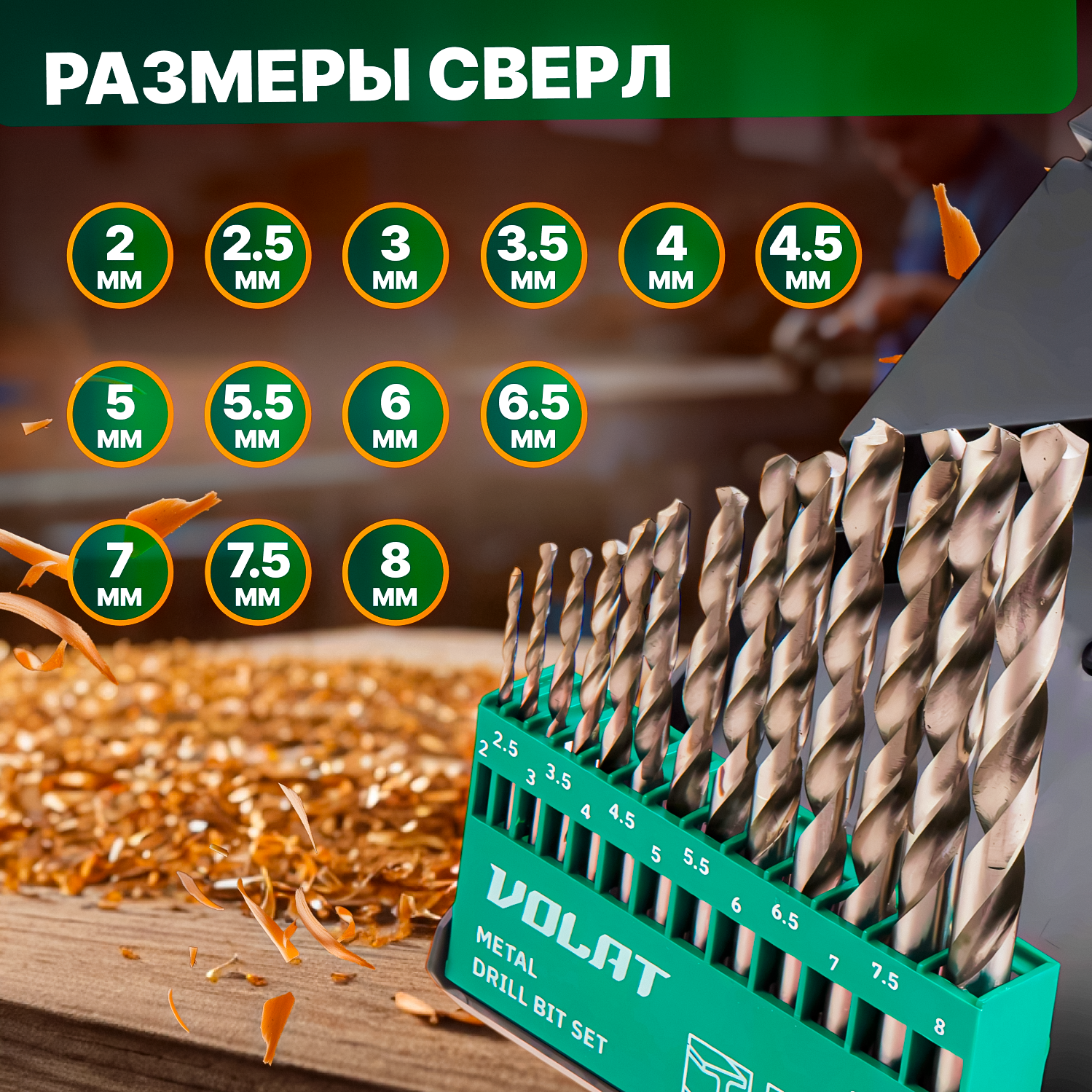 Набор сверл по металлу 13 шт, 2-8 мм волат 86000-13
