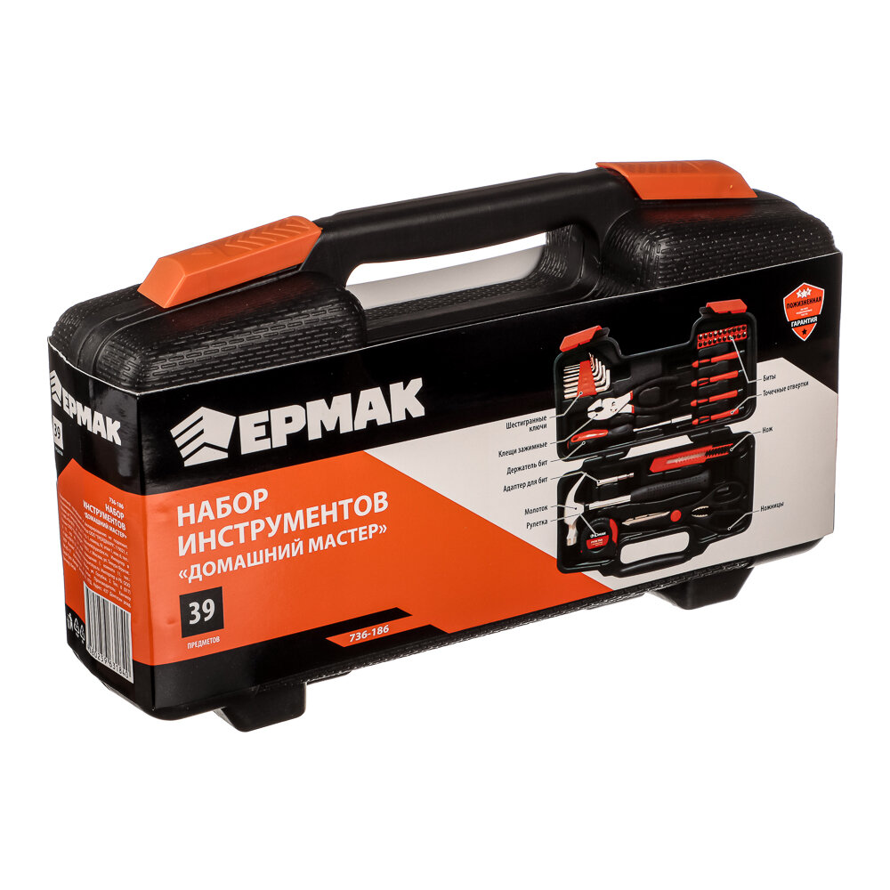 Набор инструментов ермак Домашний мастер 736-186 39 предметов в пластиковом кейсе