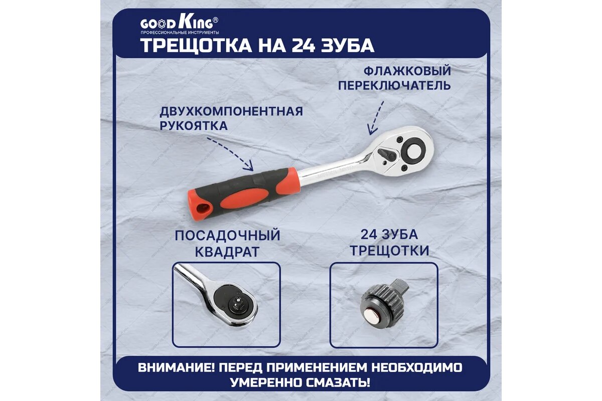 Набор ручных инструментов для авто Goodking K-10038, 38 предметов, трещотка 24 зубца 1/2" .