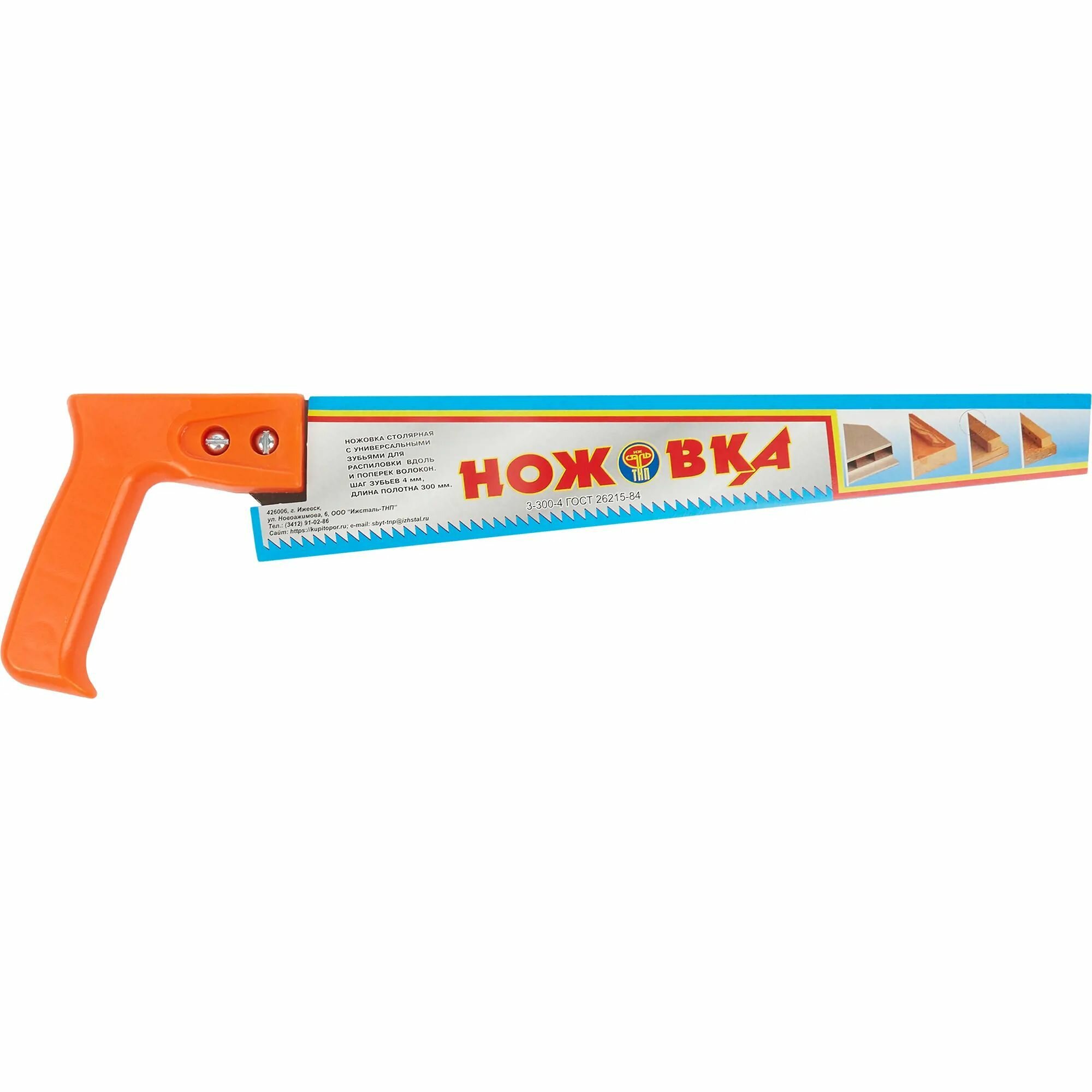 Ножовка столярная пластмассовая ручка, 300 мм, шаг зуба 4мм, Ижсталь