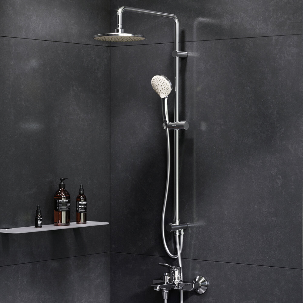 Душевая лейка надежно крепится в держателе на штанге и не вращается (была такая проблема с прошлой душевой системой) Мягкие шланги, изгибаются с малым радиусом, это удобно. Можно купить смеситель той же серии и в том же дизайне. |