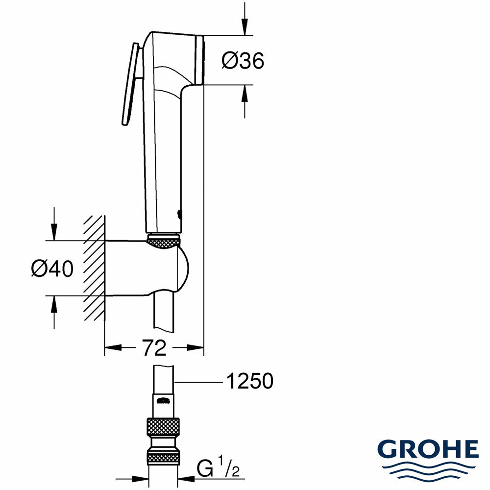 Набор для гигиенического душа GROHE Tempesta-F (гигиенический душ, настенный держатель, шланг 1250 мм), белая луна (26356IL0)