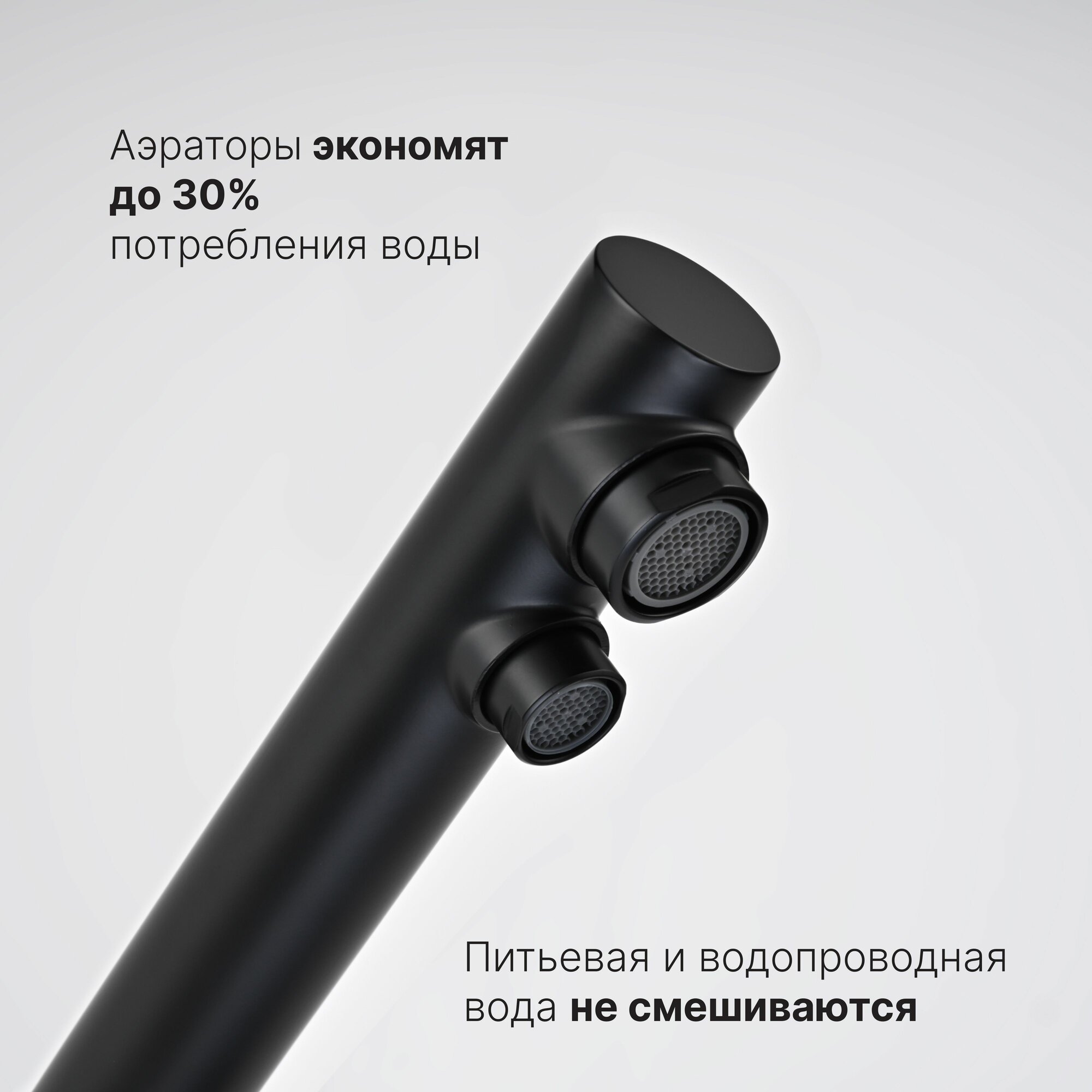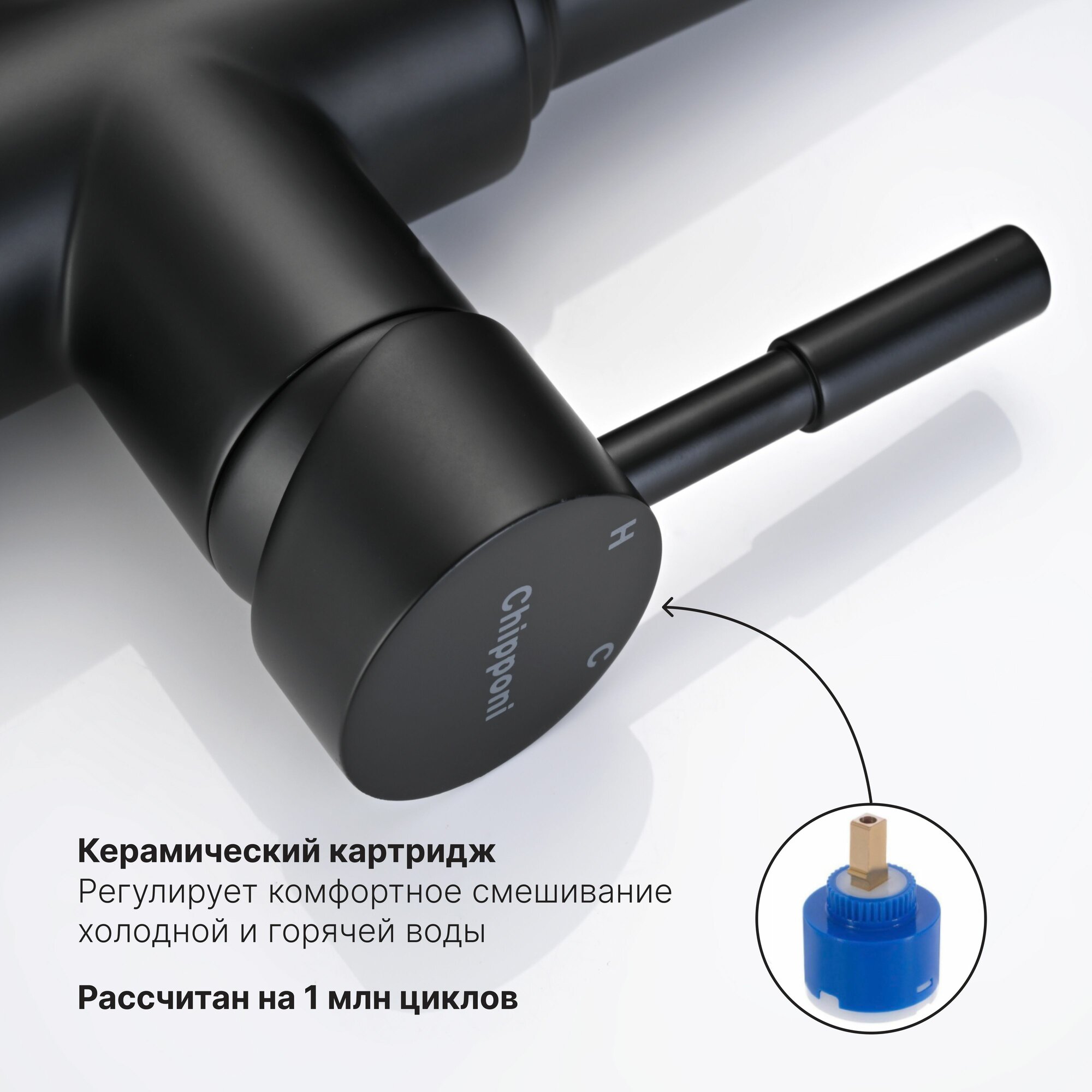 Смеситель для кухни с подключением к фильтру питьевой воды черный, корпус латунь. Chipponi 212BL интересное: