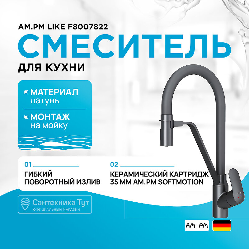 Смеситель для кухни AM.PM Like F8007822 с гибким изливом