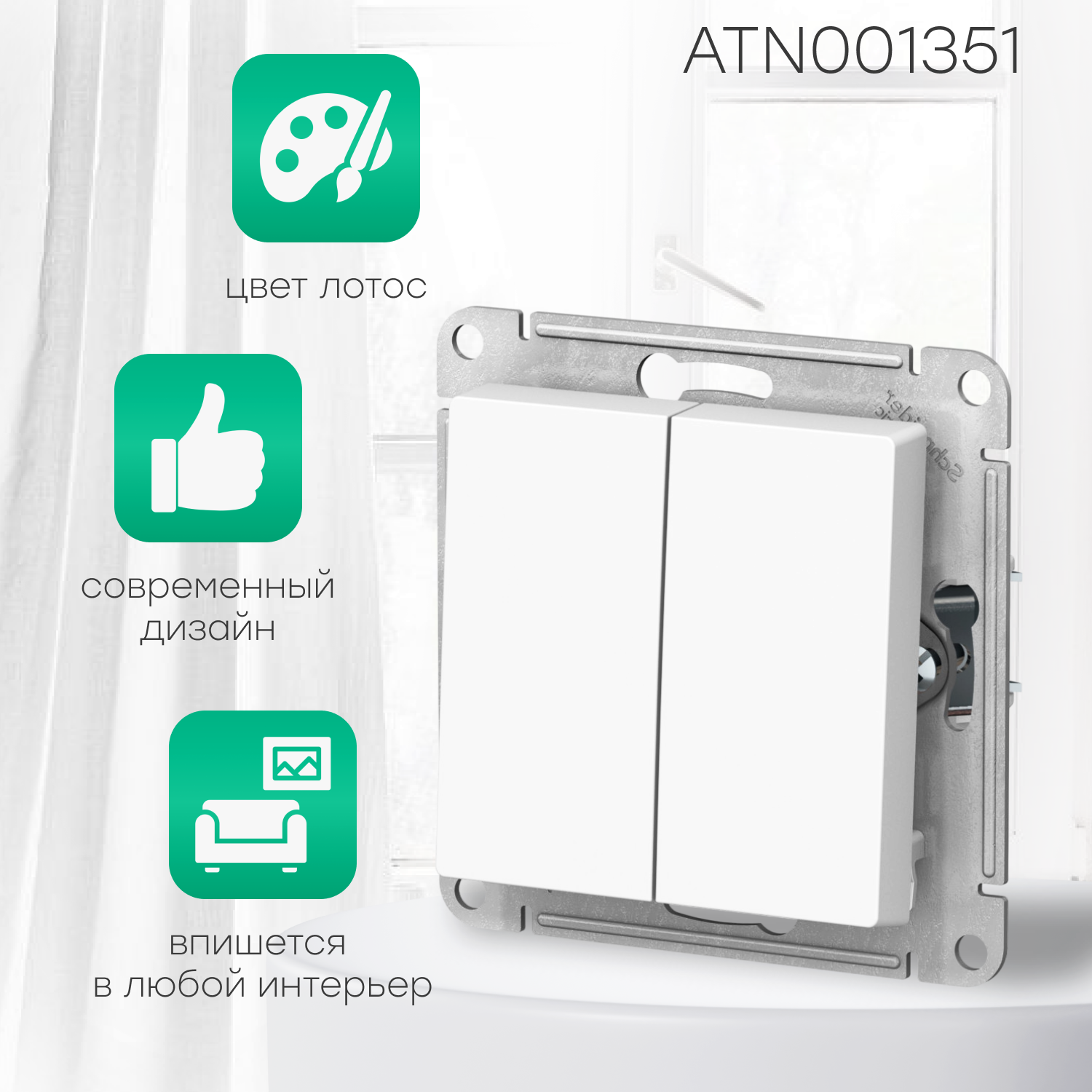 СохранитьSE AtlasDesign Бел Выключатель 2-клавишный сх.5, 10АХ, механизм интересное: