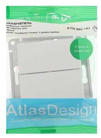 Выключатель электрический Systeme Electric Atlas Design 2-клавишный, 10А, 10 AX, Белый ATN000151 - 10 шт.