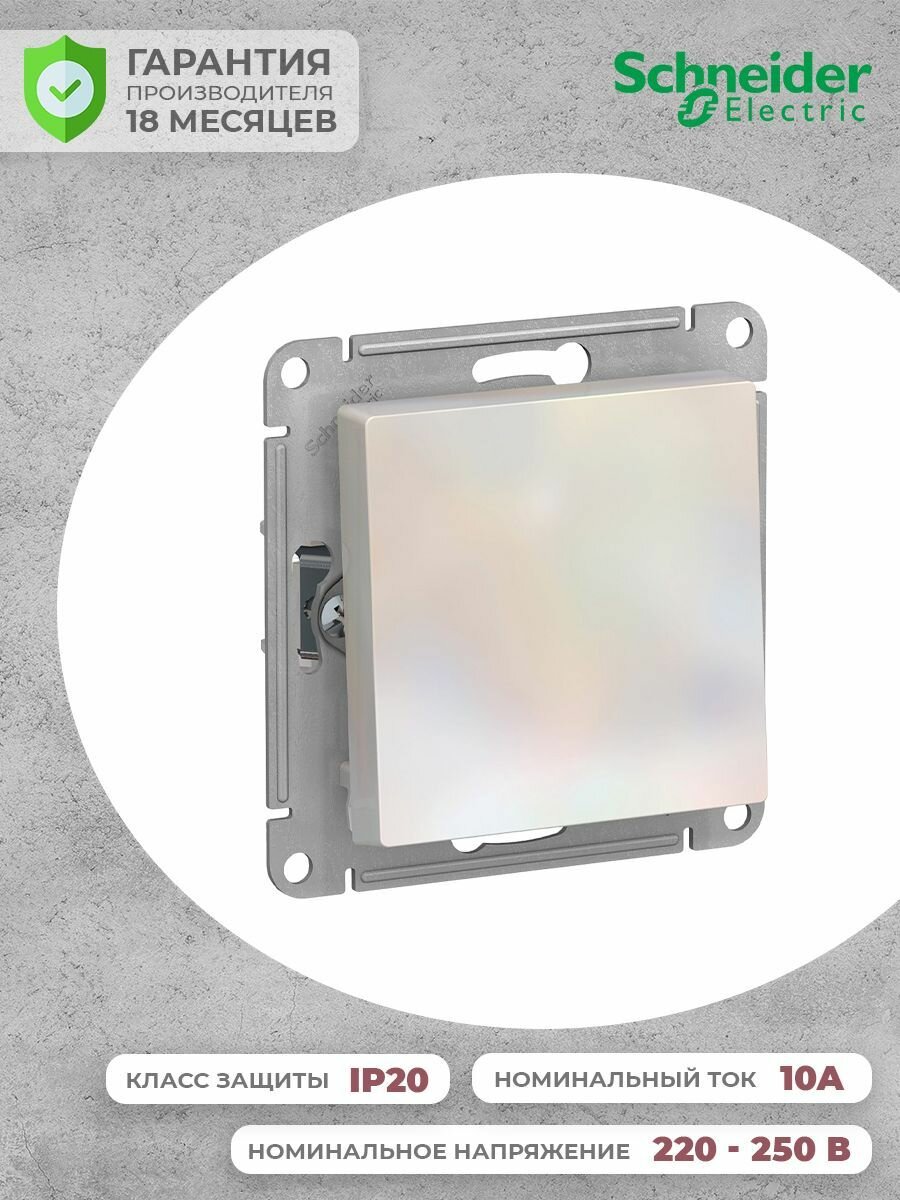 Выключатель одноклавишный с подсветкой (жемчуг), сх.1а, 10АХ, механизм Schneider Electric AtlasDesign (комплект 10шт)