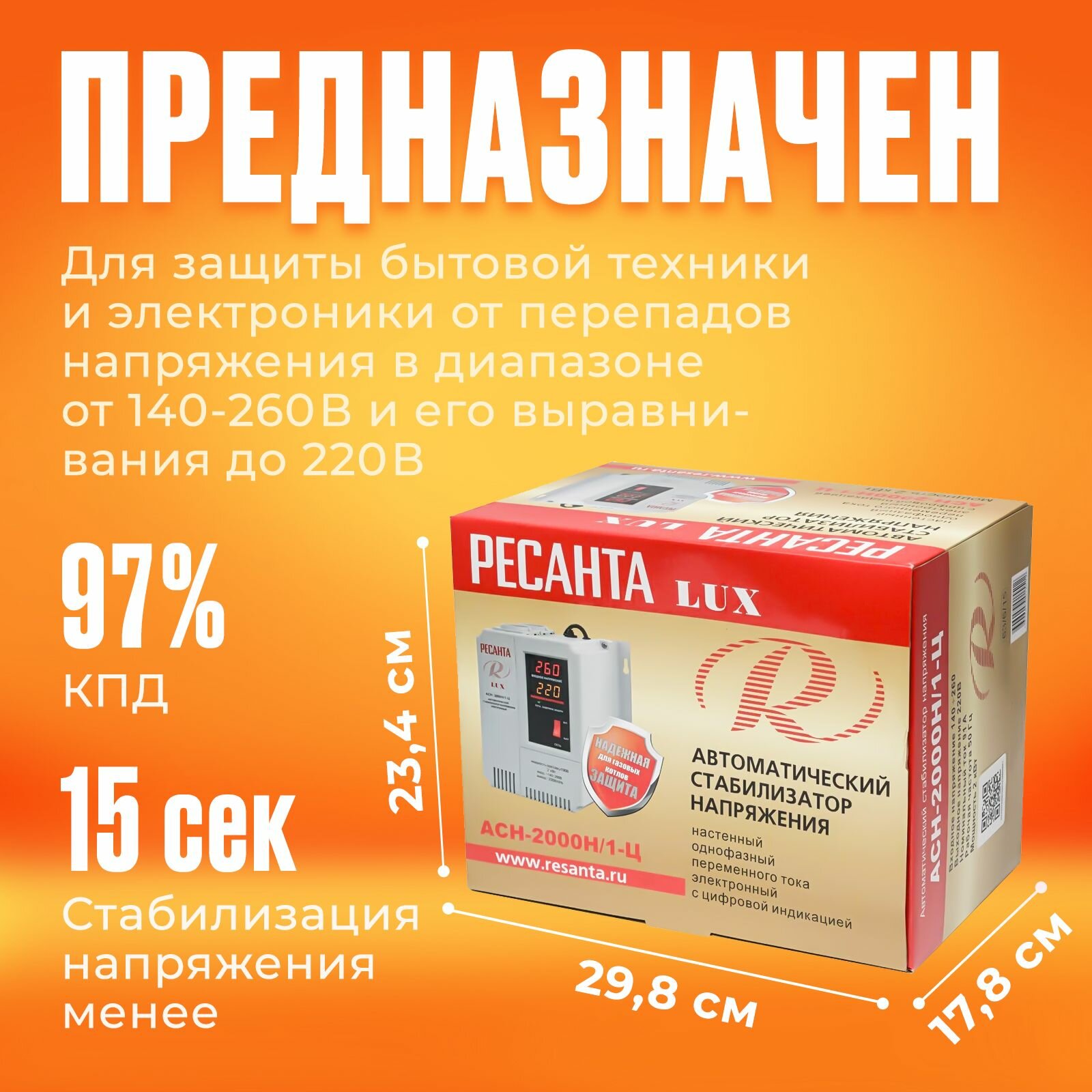 Стабилизатор напряжения РЕСАНТА LUX АСН-2000Н/1-Ц .