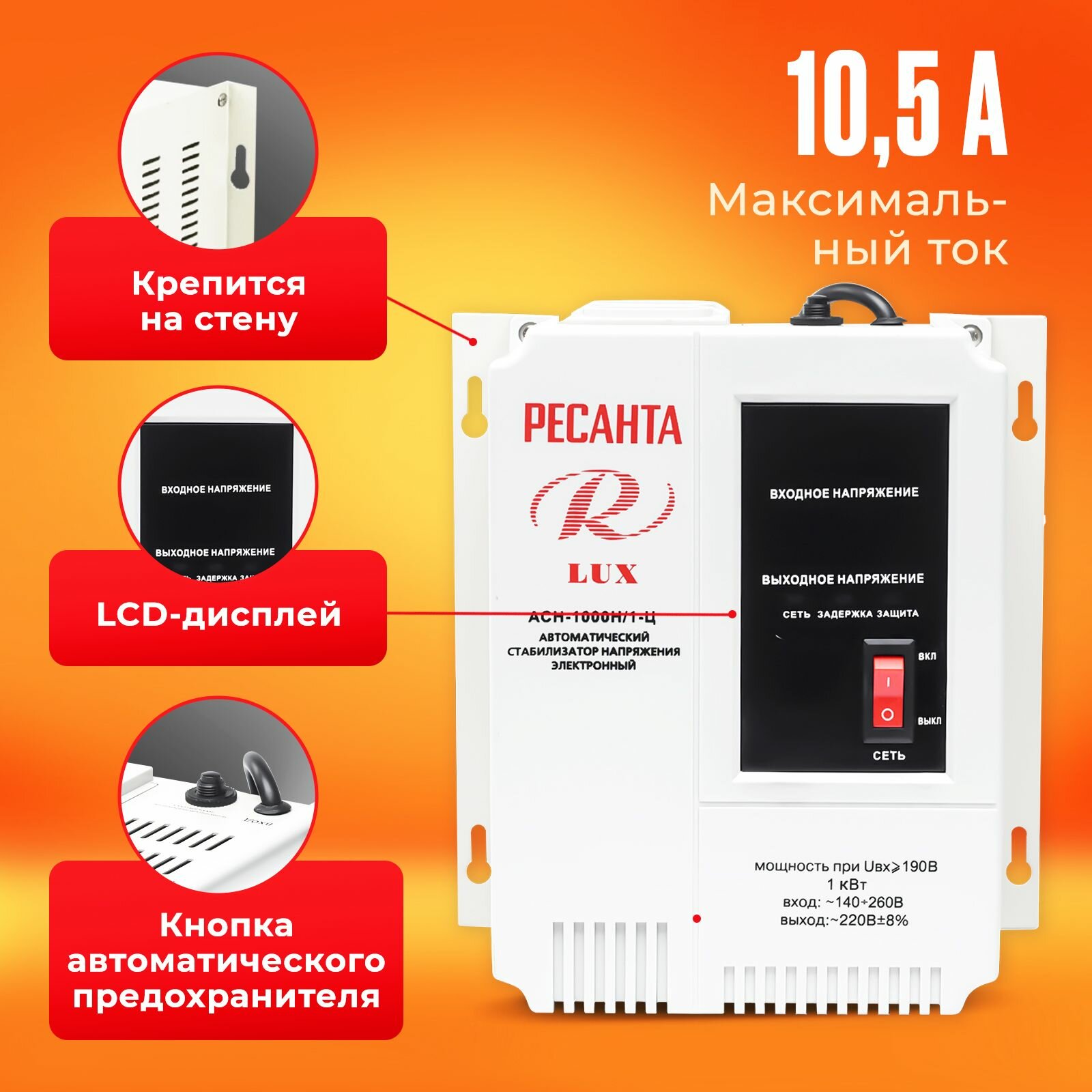 РЕСАНТА LUX ACH-2000Н/1-Ц Стабилизатор напряжения, настенный, однофазный, цифровой 2 кВт