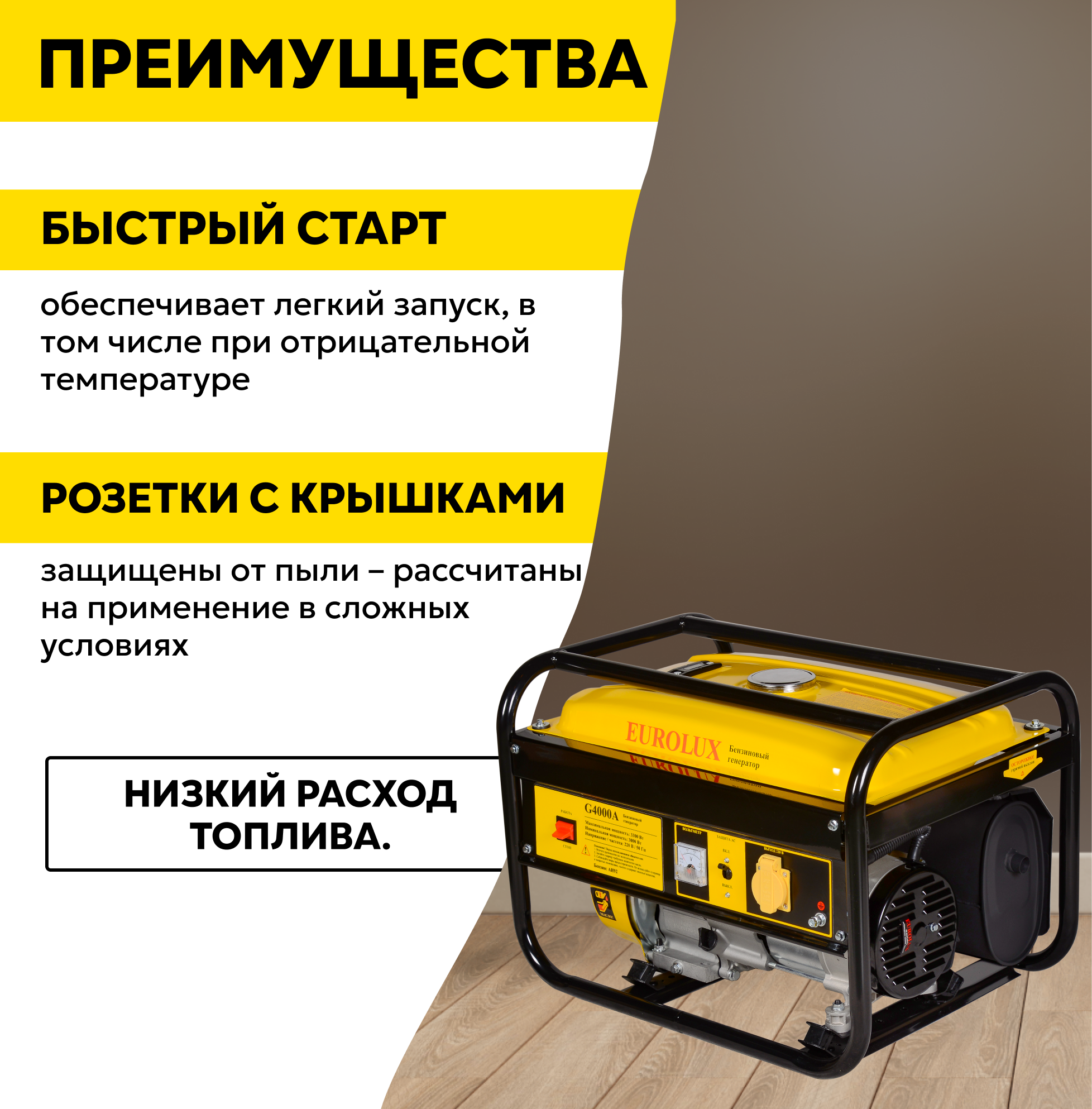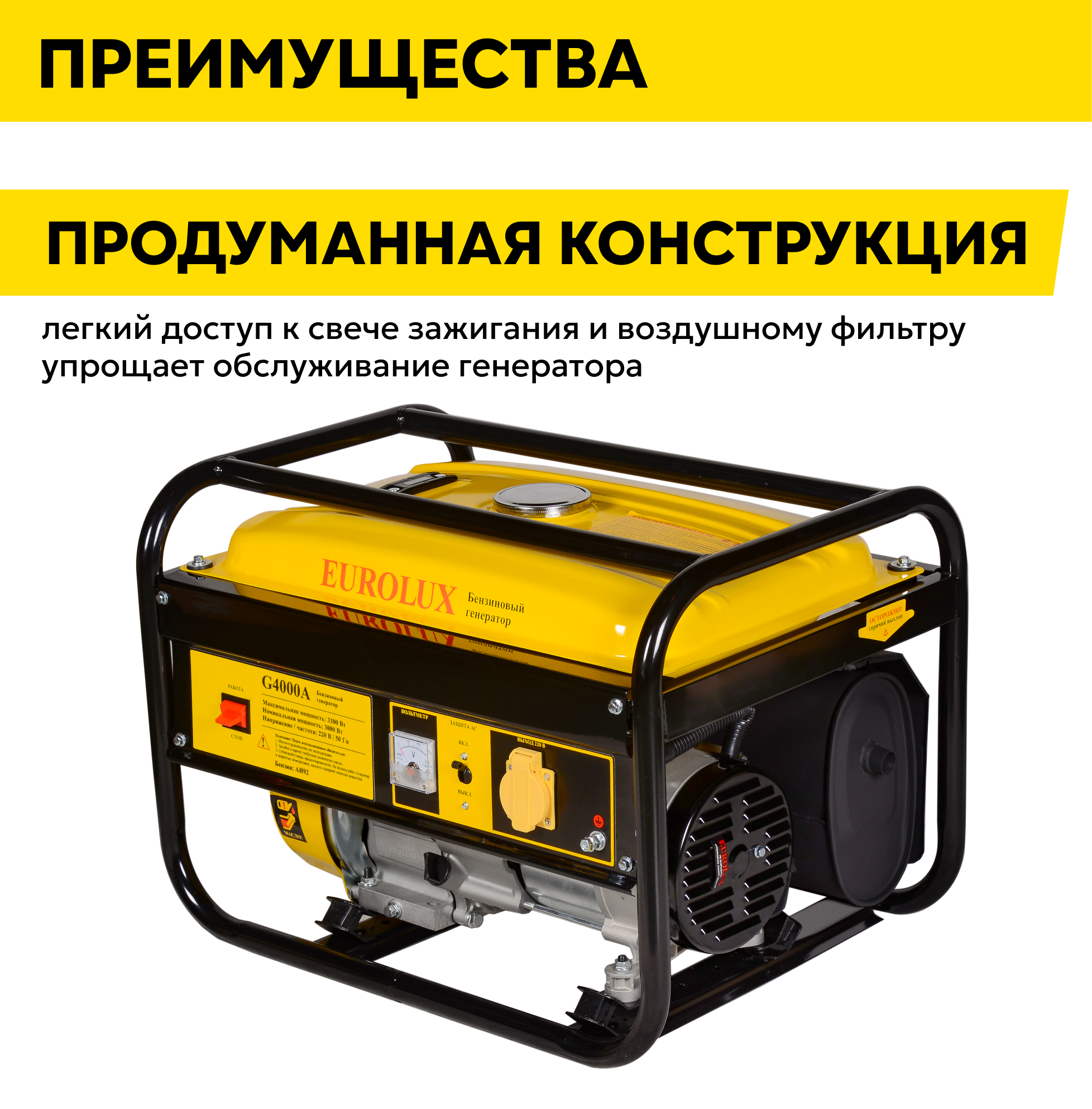 Бензиновый генератор EUROLUX G4000A 3300Вт с ручным запуском интересное: