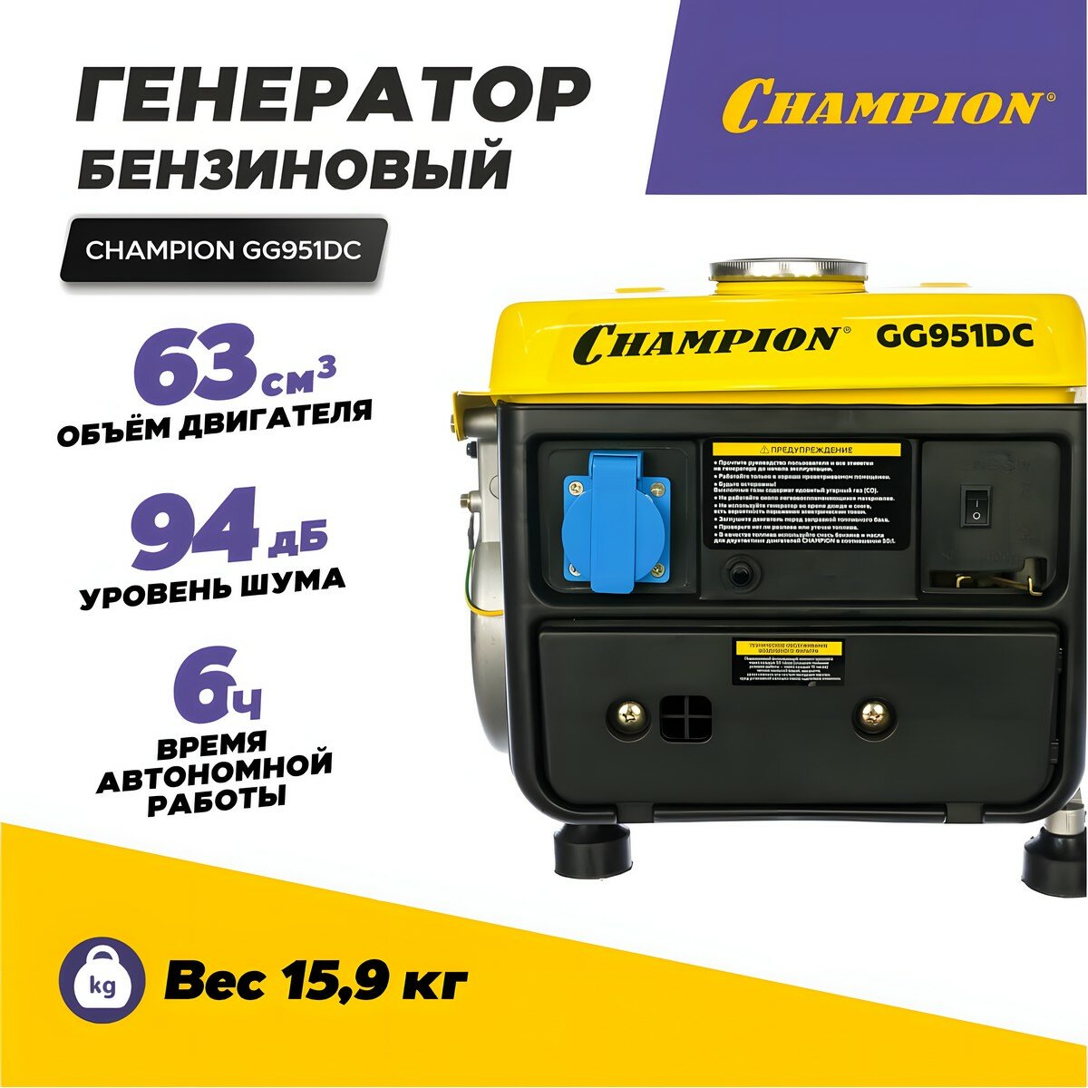 Генератор бензиновый CHAMPION GG951DC, 0,65 кВт, двухтактный