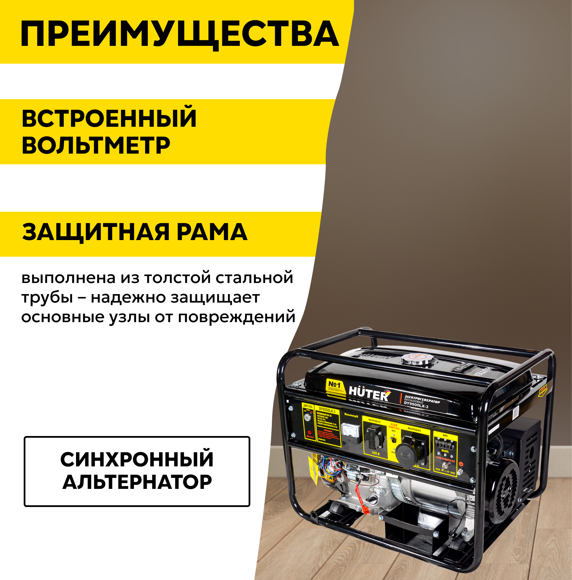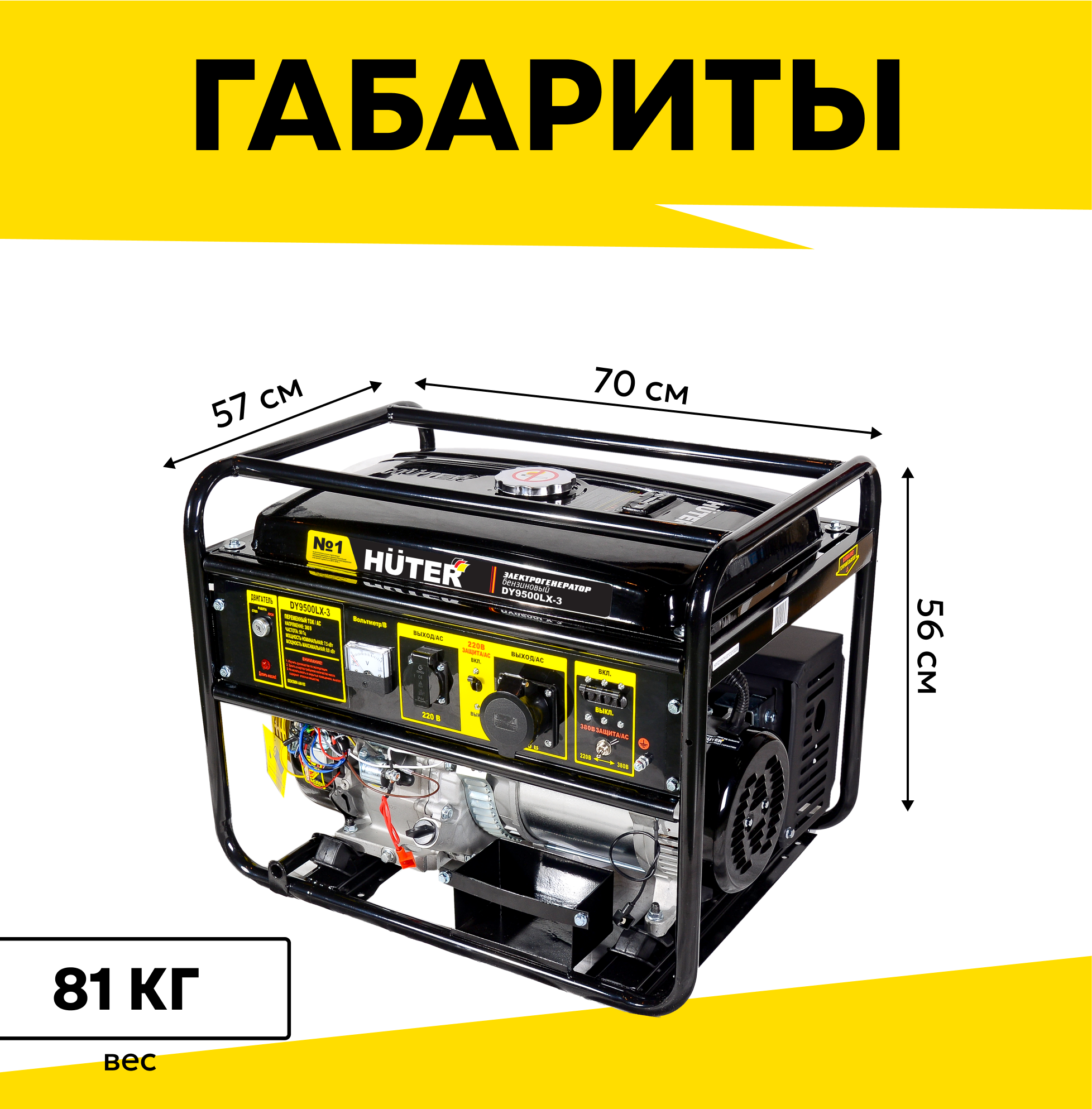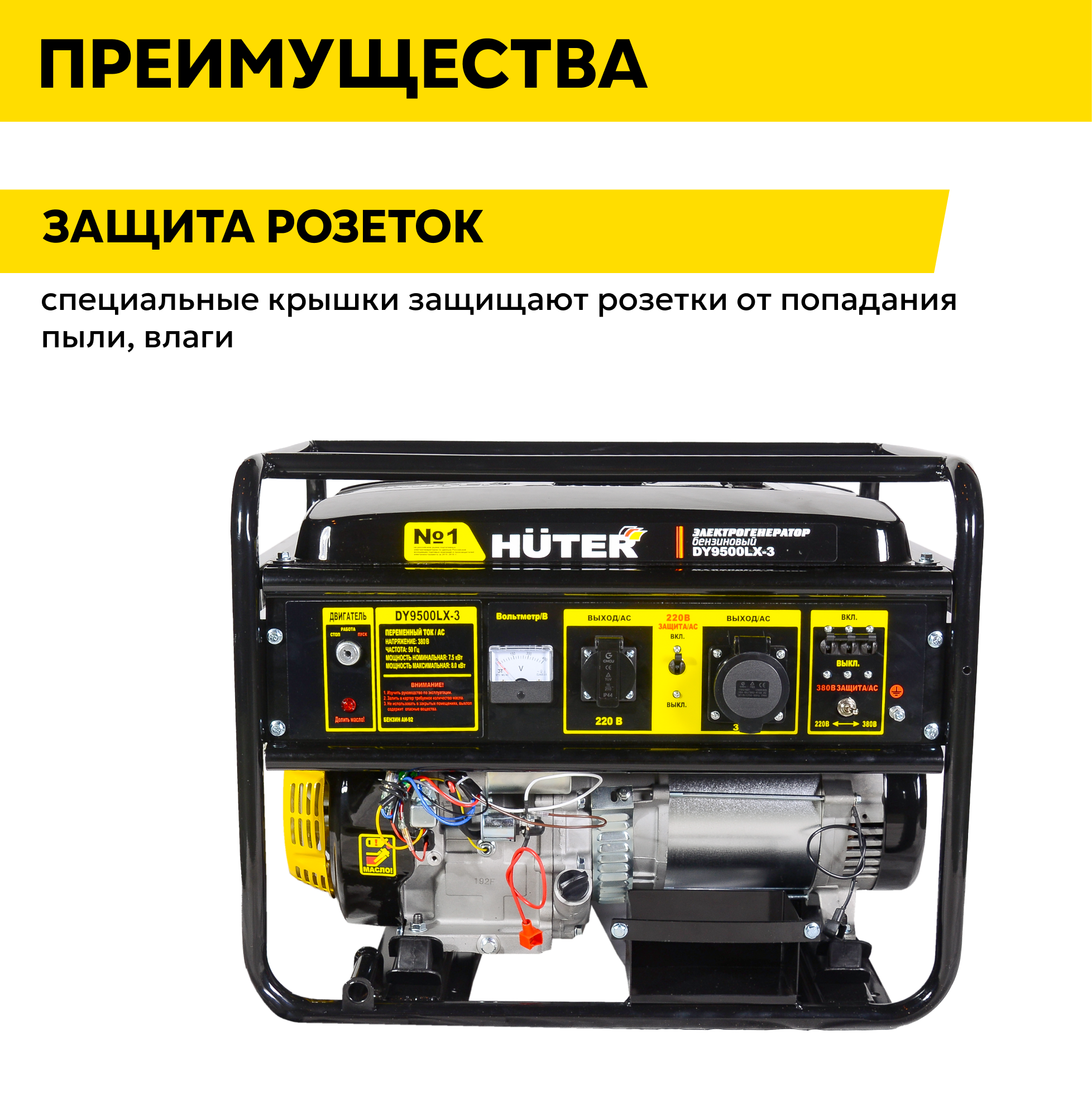 Купить Бензиновый генератор Huter DY9500LX-3 с электростартером и максимальной мощностью 8000Вт