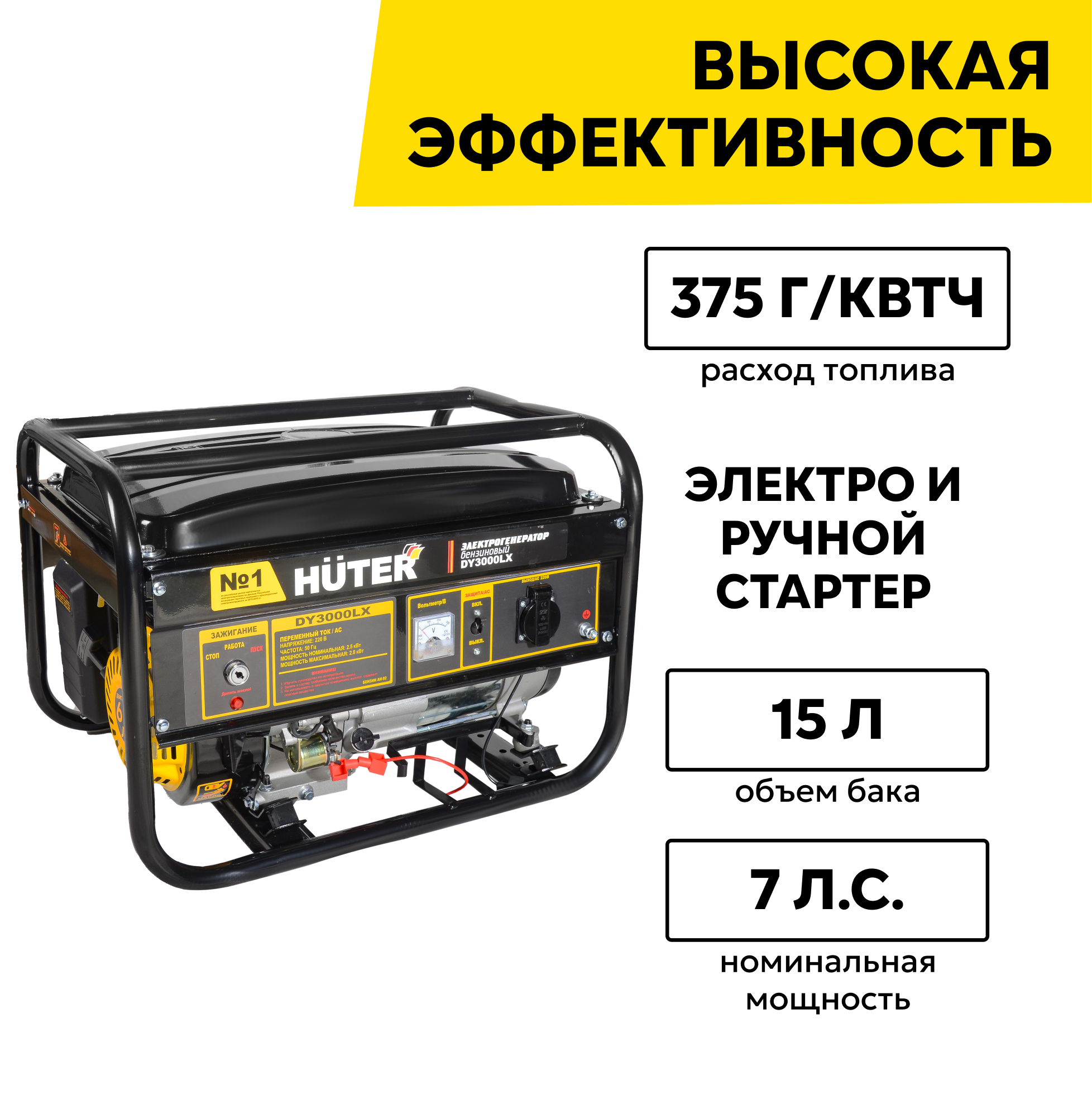 Купить Бензиновый генератор HUTER 3000LX с электростартером и максимальной мощностью 2800 Вт