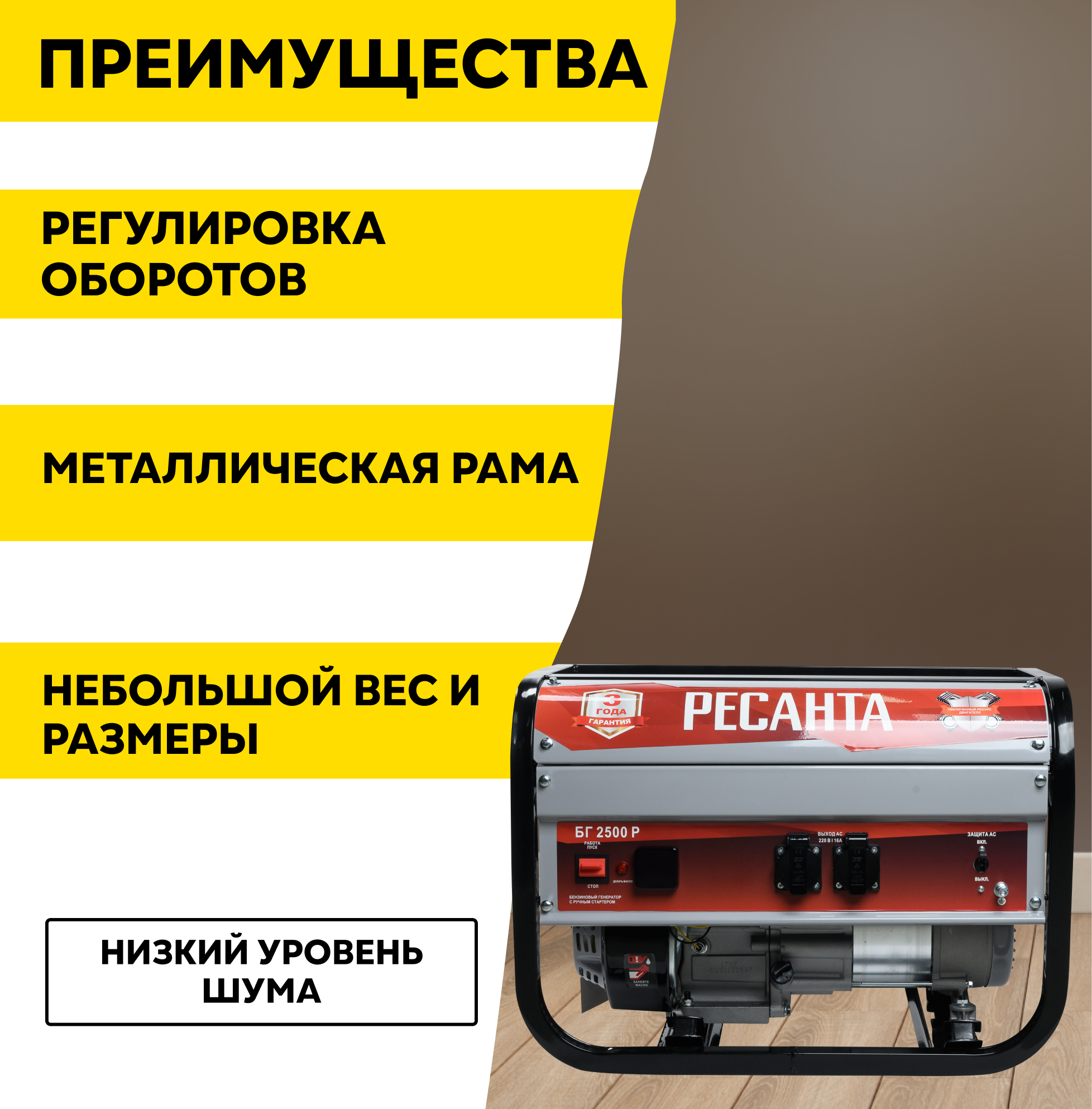 Бензиновый генератор РЕСАНТА БГ 2500 Р, (2200 Вт)
