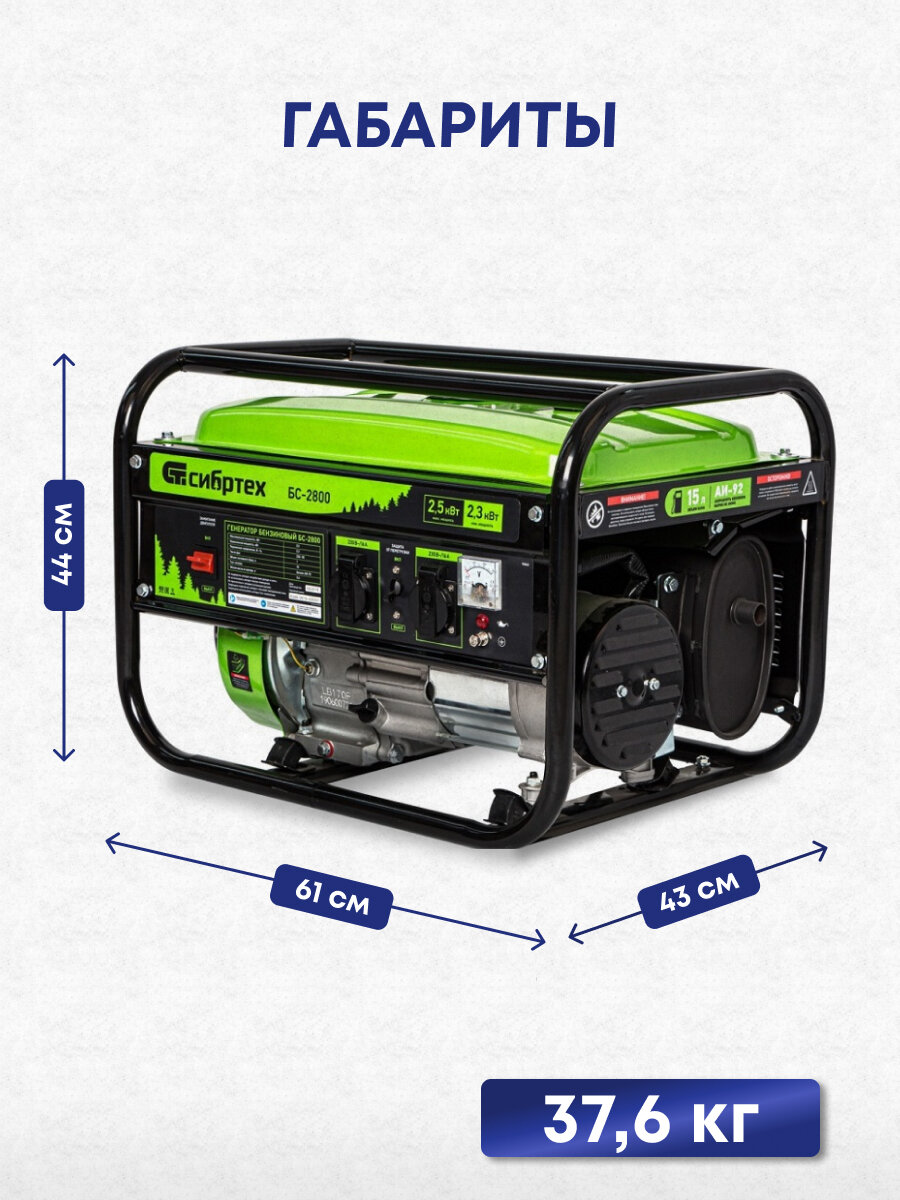 Бензиновый генератор СИБРТЕХ БС-2800, 230, 2.5кВт [94543]