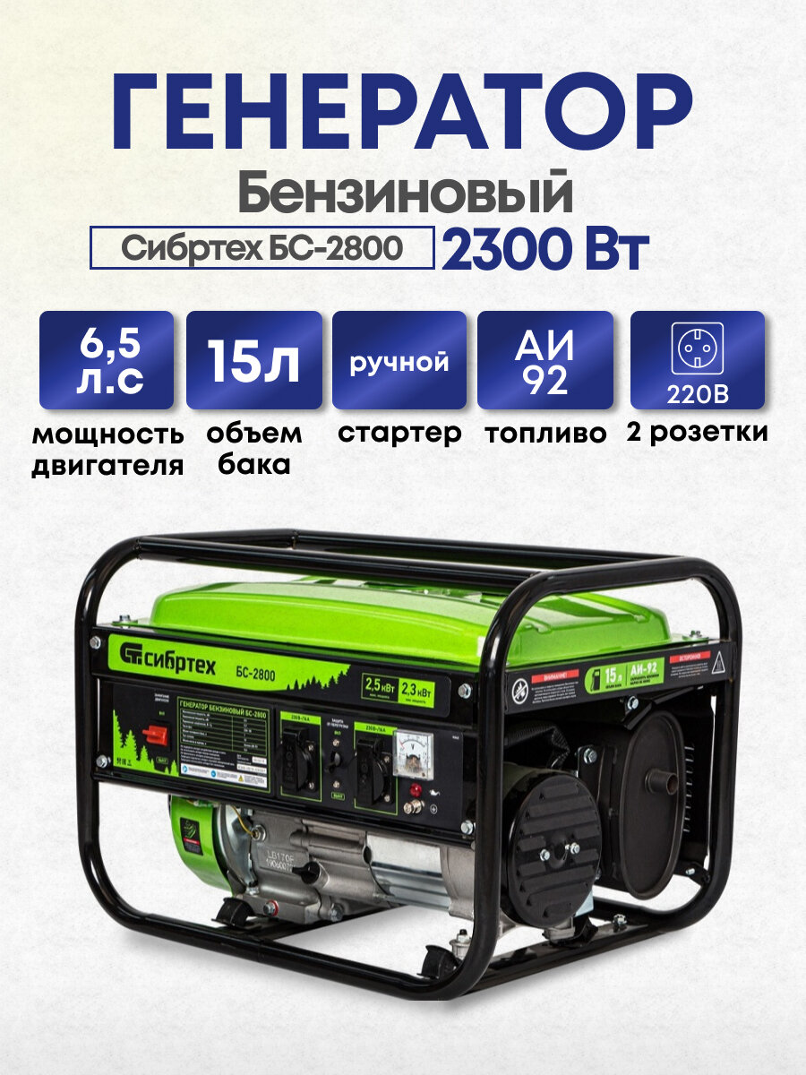 Ниже Вы можете прочитать отзывы на Бензиновый генератор Сибртех БС-2800, (2500 Вт), ознакомится с подробными характеристиками, посмотреть интересные обзоры и фотографии на Бензиновый генератор Сибртех БС-2800, (2500 Вт).