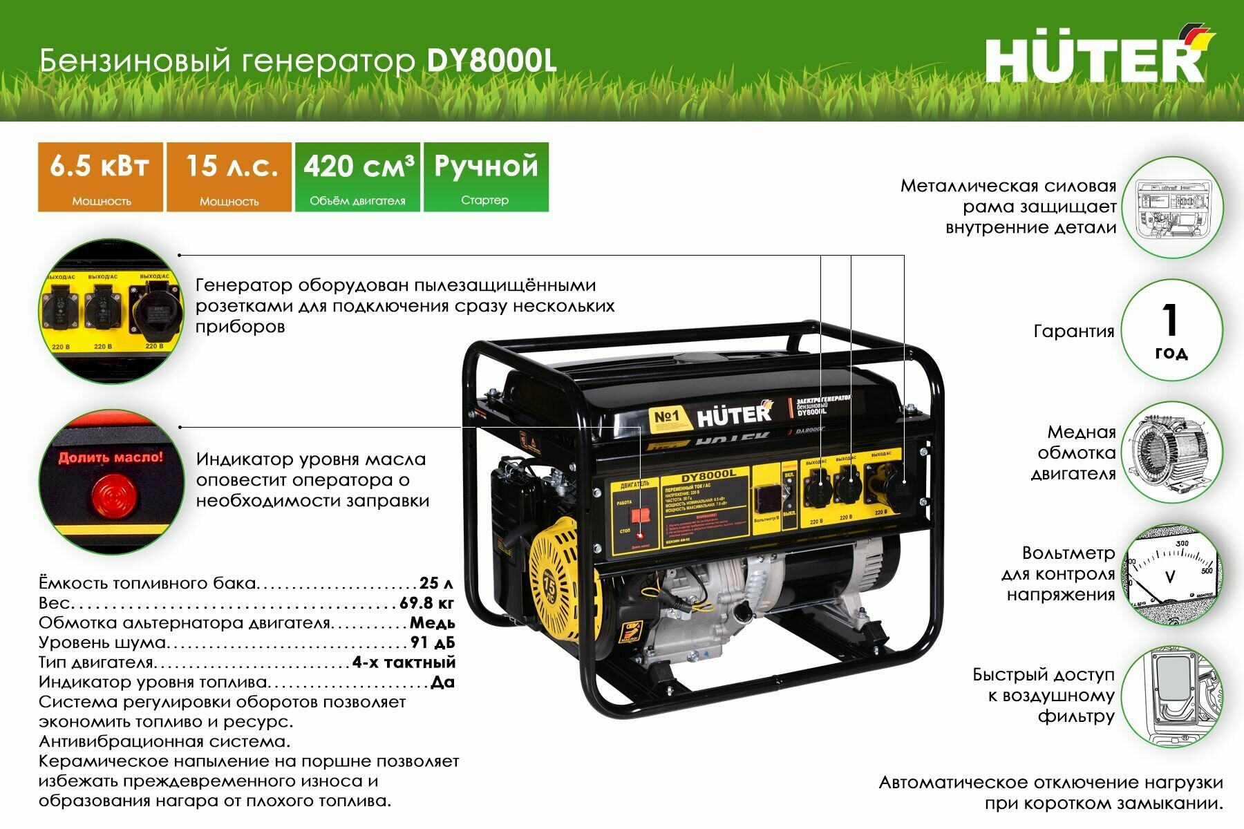 Электрический генератор и электростанция Huter DY8000L 64/1/33