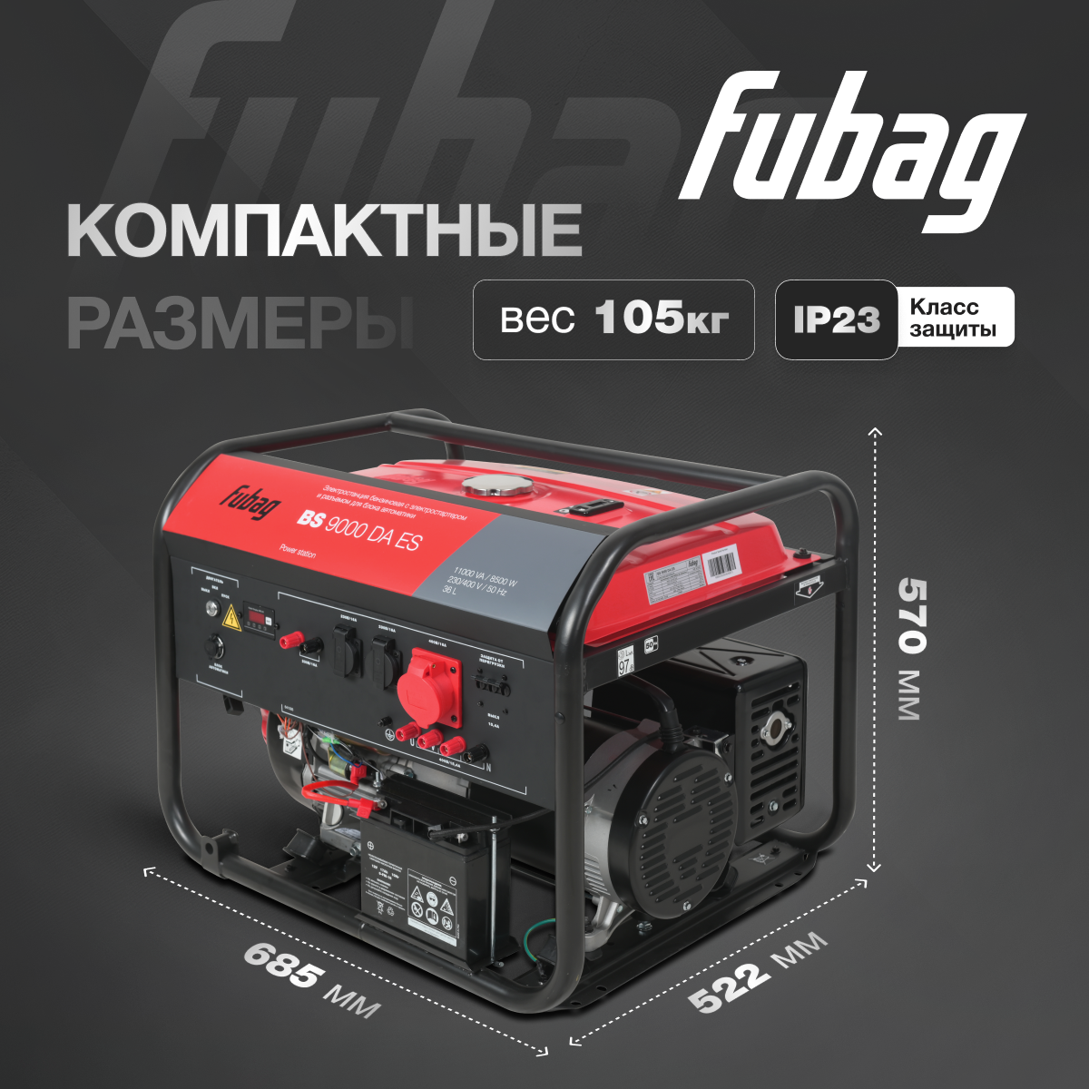 Генератор бензиновый FUBAG BS 11000 DA ES, 10 кВт, 380 В, трехфазный