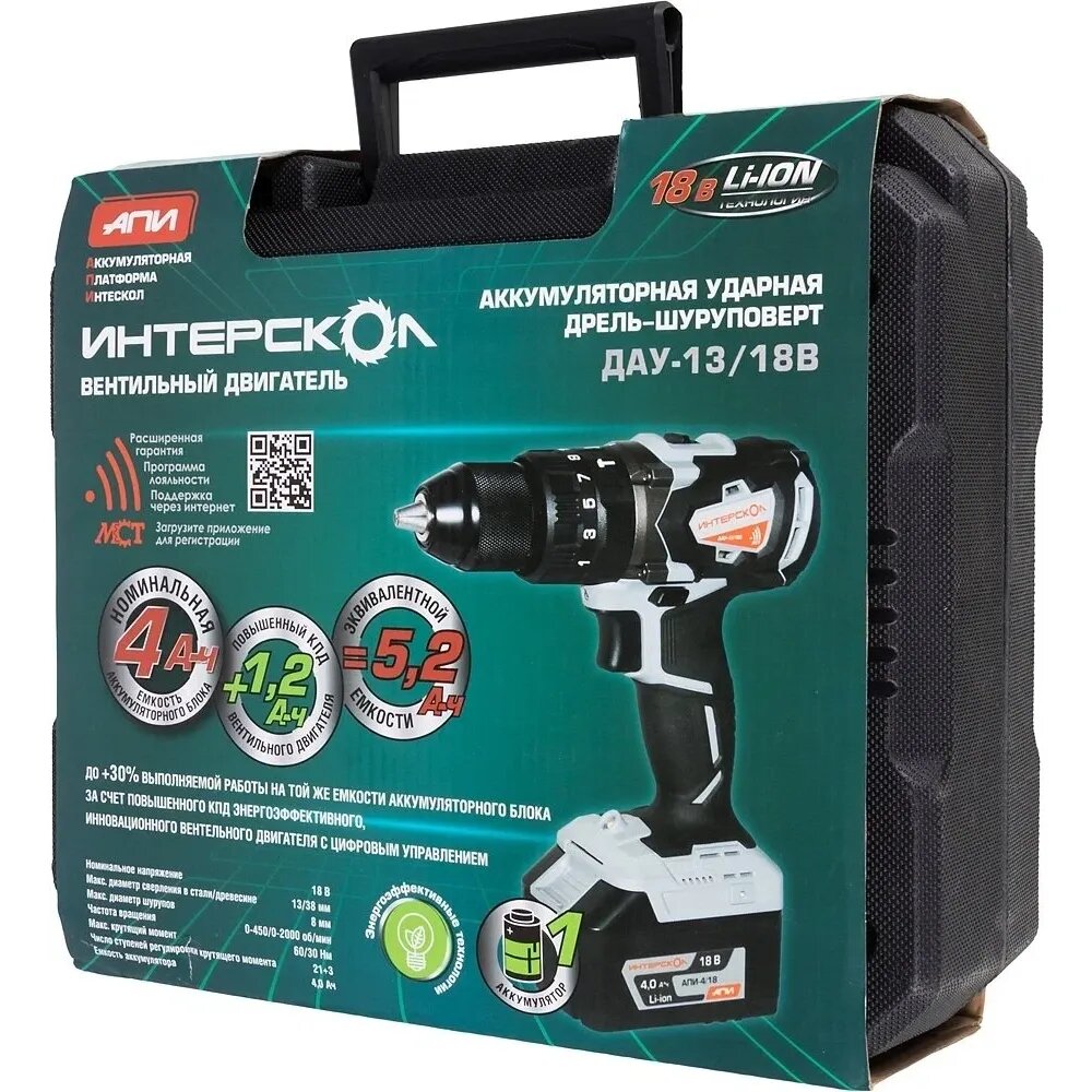 Интерскол Дау-13/18в акк. удар. дрель-шуруп. Li-ion АПИ [574.4.1.70] кейс, 1 аккум. 4Ач, ЗУ