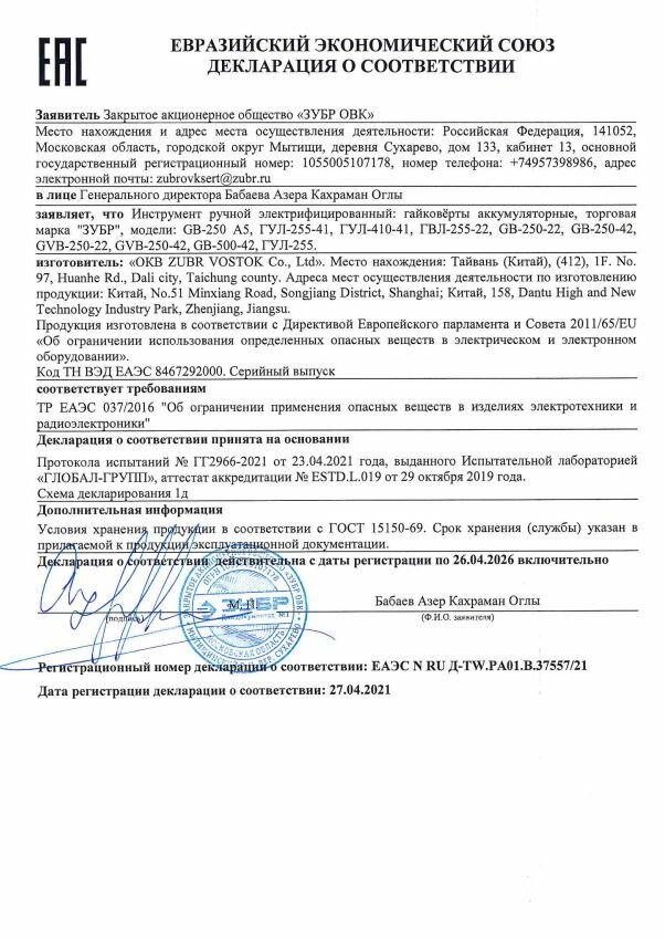 | Подробная комплектация | винтоверт ЗУБР ГВЛ-255-22 х1, аккумулятор х2, зарядное устройство х1, кейс х1, скоба поясная х1, инструкция по безопасности х1, руководство по эксплуатации х1 |