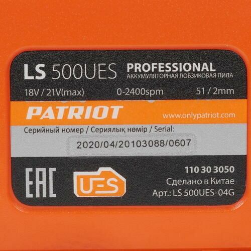 Лобзик аккумуляторный Patriot LS 500UES, арт. 110303050