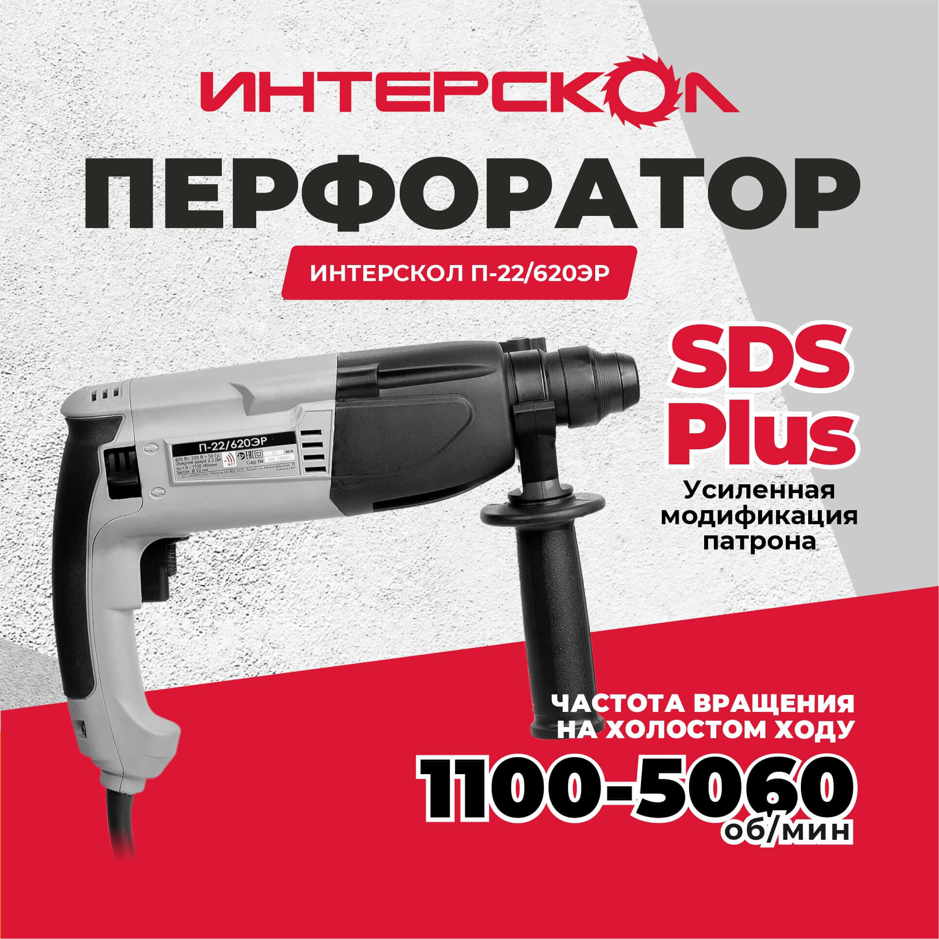 Перфоратор SDS plus ИНТЕРСКОЛ П-22/620ЭР (кейс) 100.0.0.00