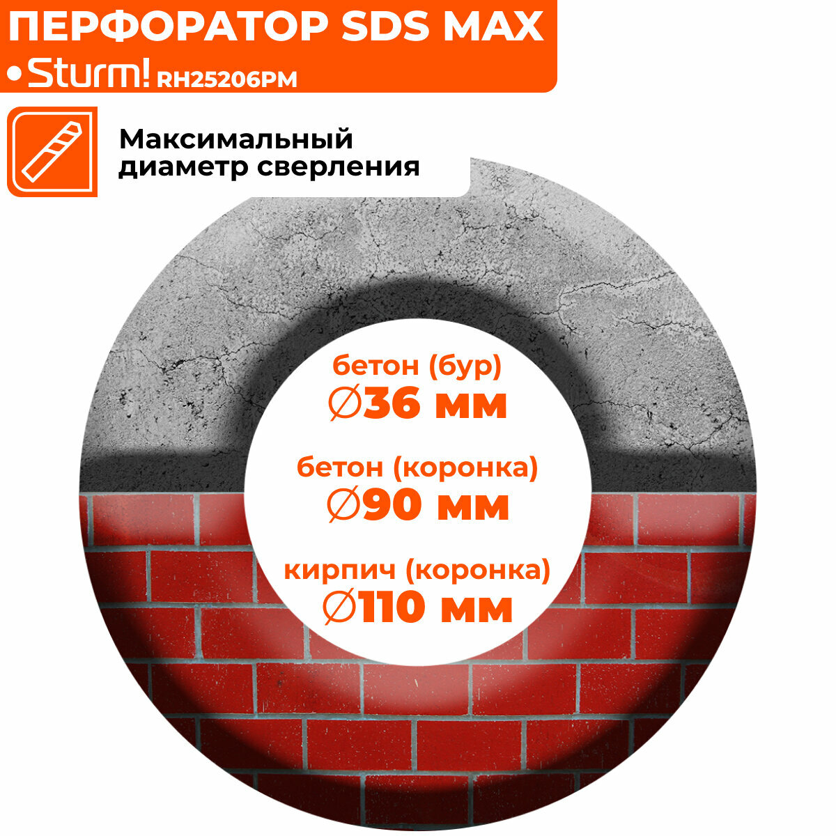 | Макс. диаметр сверления (коронкой) | 110 мм |
