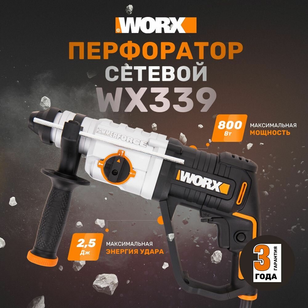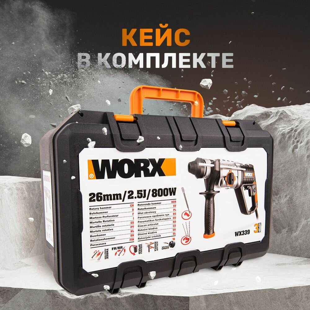 Перфоратор сетевой WORX WX339, 2,5 Дж, 800 Вт, кейс