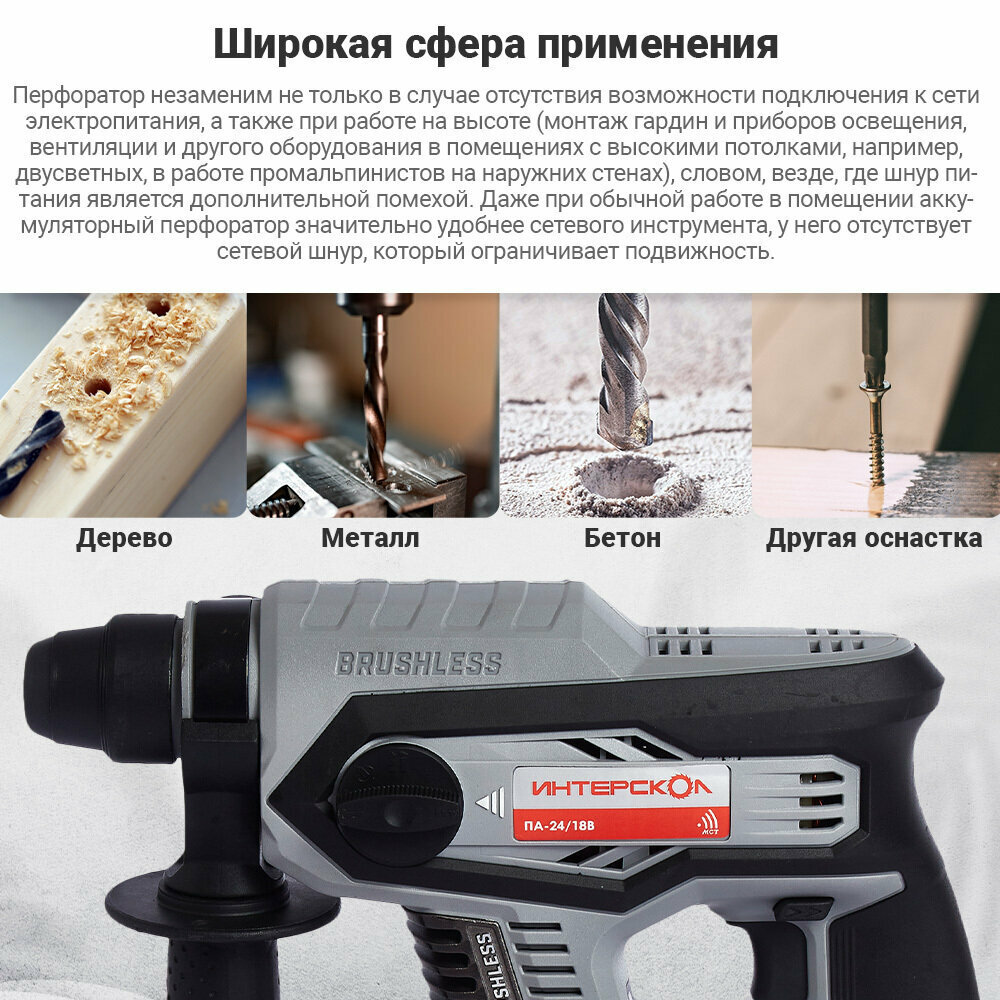 Профессиональный трехрежимный перфоратор с бесщеточным (вентильным) двигателем ИНТЕРСКОЛ ПА-24/18В, 579.0.0.70